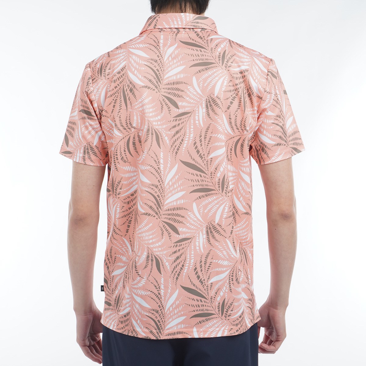 通気性の良いメッシュ素材を使用し、カットソーの快適な着心地と軽さを提供する、プリント半袖ポロシャツ。