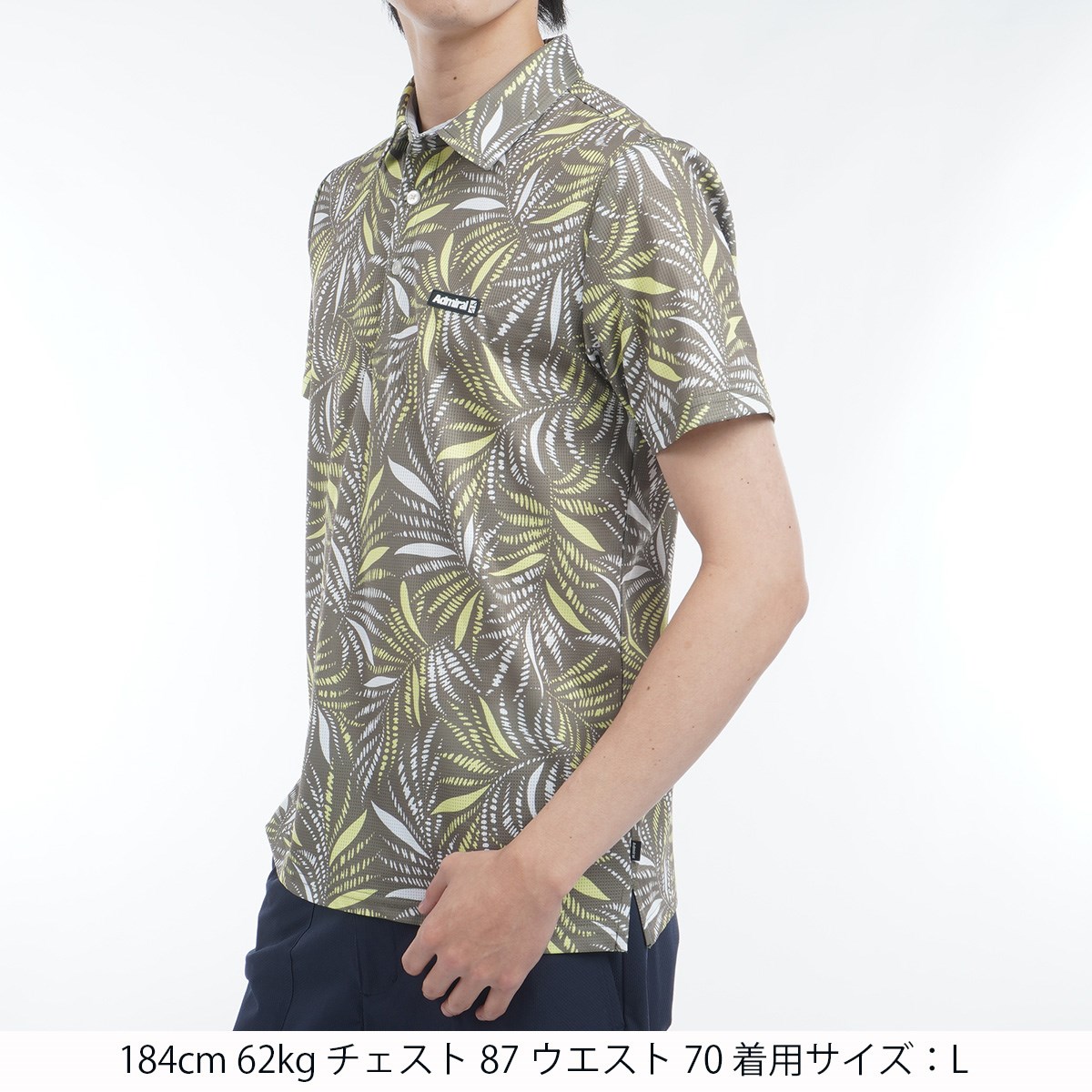 アドミラル Admiral ストレッチ リゾートプリント 半袖ポロシャツ M オリーブ