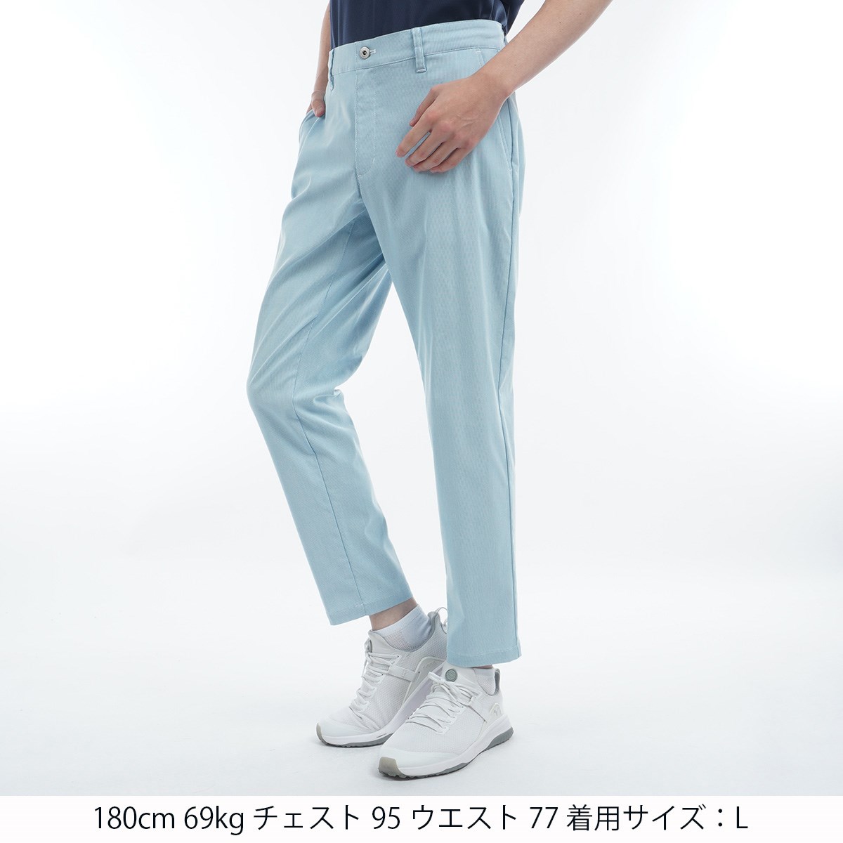 ヒップ周りにゆとりを持たせたワイドテーパードシルエットと、ウエストの内側に平ゴムを使用して、動きやすさを確保しています。