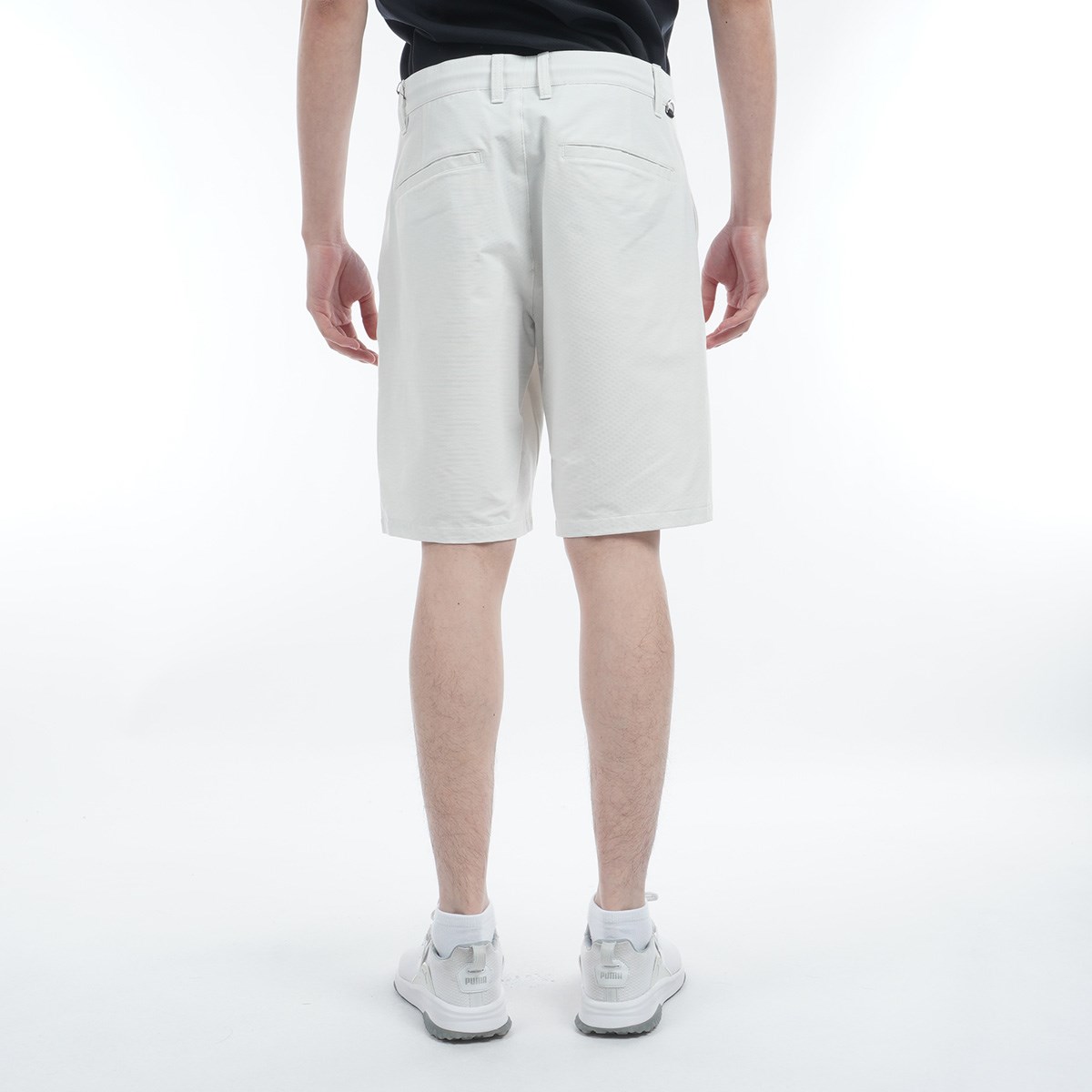 横ストレッチのコードレーン素材を使用し、優れた伸縮性を提供する、ショートパンツ。