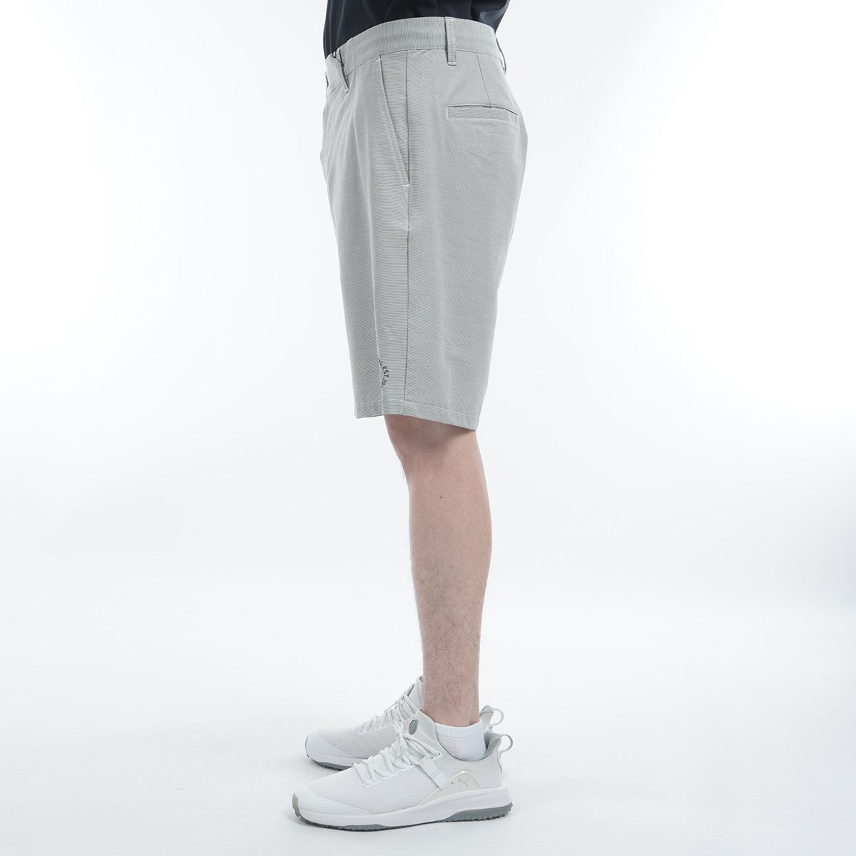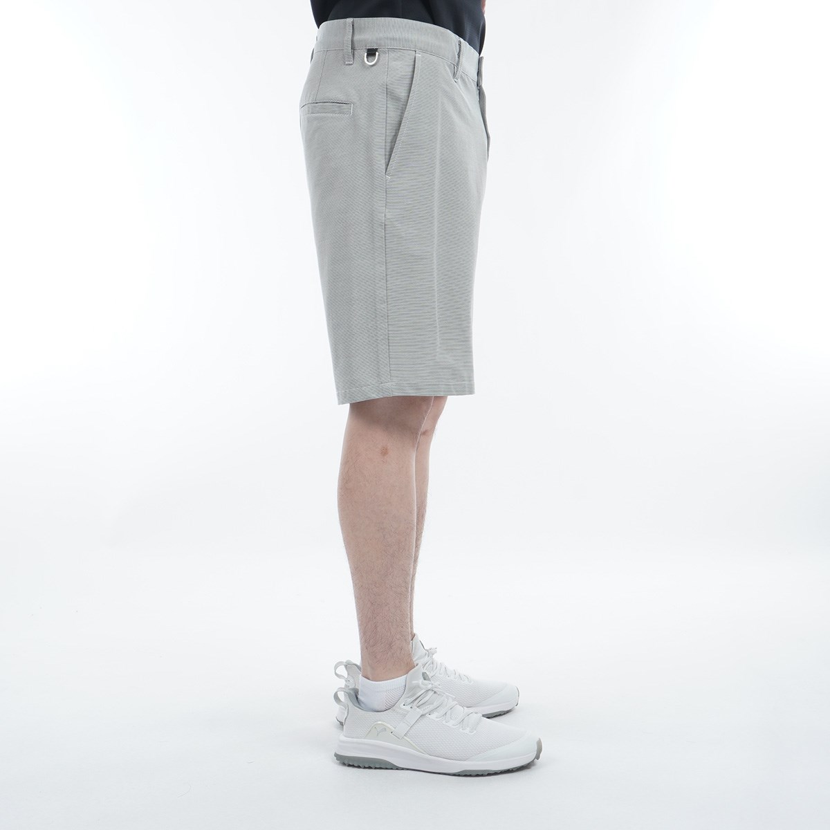 横ストレッチのコードレーン素材を使用し、優れた伸縮性を提供する、ショートパンツ。