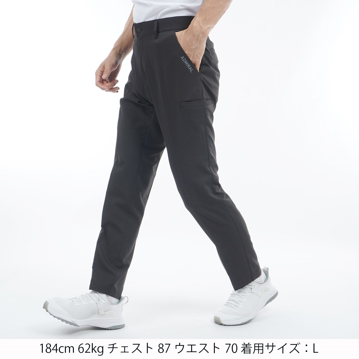 アドミラル Admiral ストレッチ 打ち水 ワイドテーパードパンツ 3L ブラック