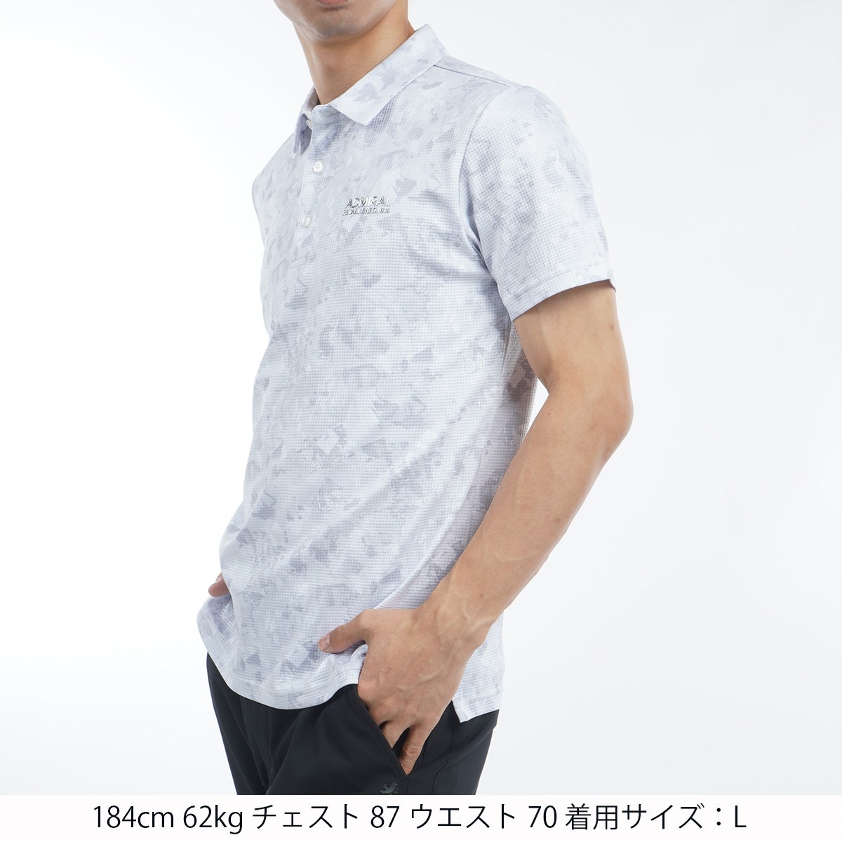 アドミラル Admiral ストレッチ ローラー カモフラージュプリント半袖ポロシャツ M ホワイト