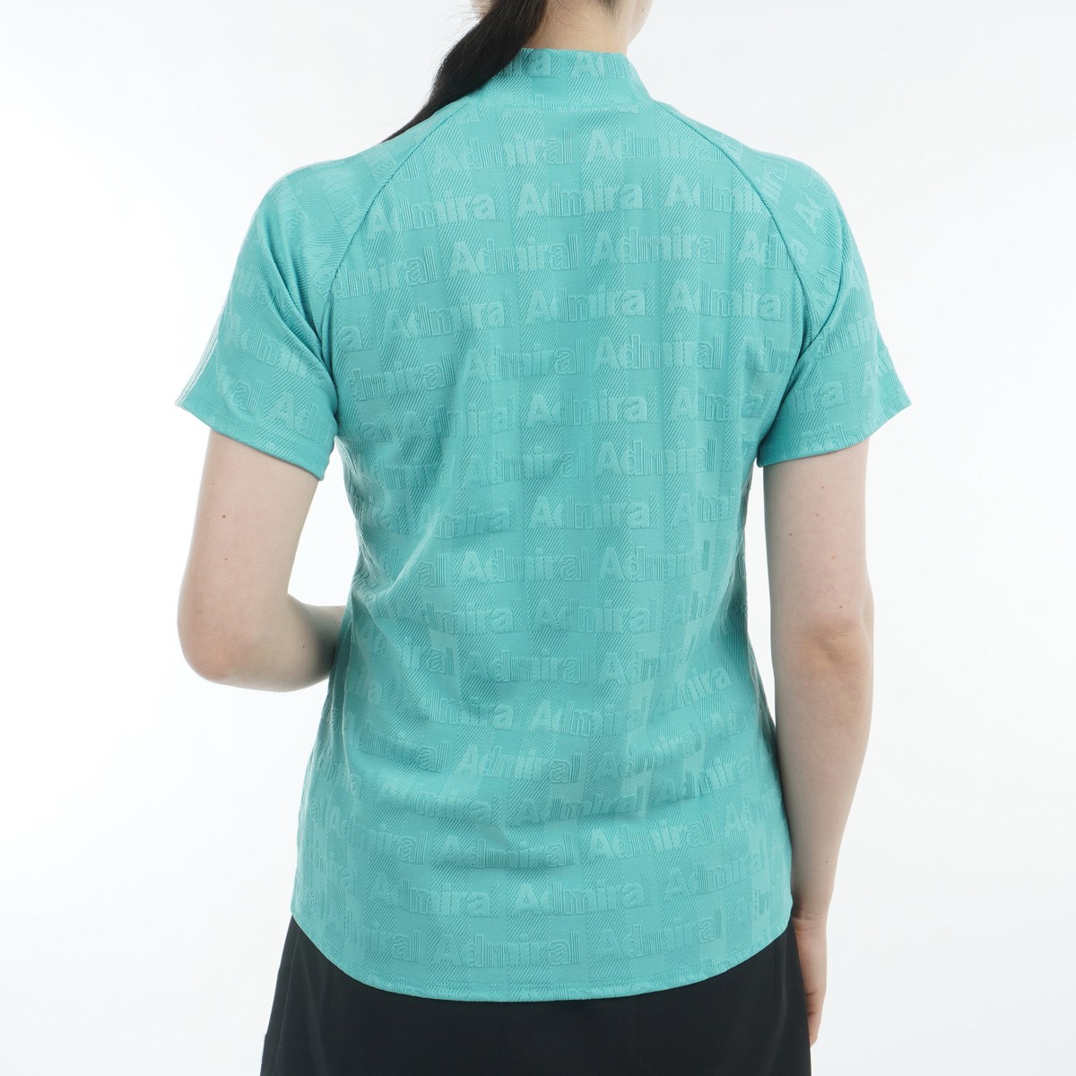 アドミラル Admiral ストレッチ ストライプジャカード モックネック半袖シャツ L ライトグリーン レディス