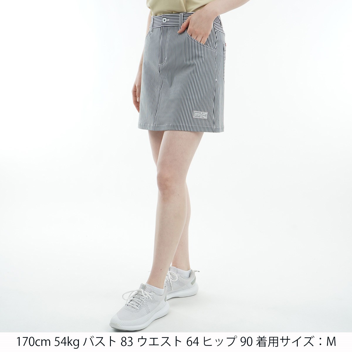 撥水性とストレッチ性を備えた高性能な素材を使用した、4WAYツイル ストライプスカート。