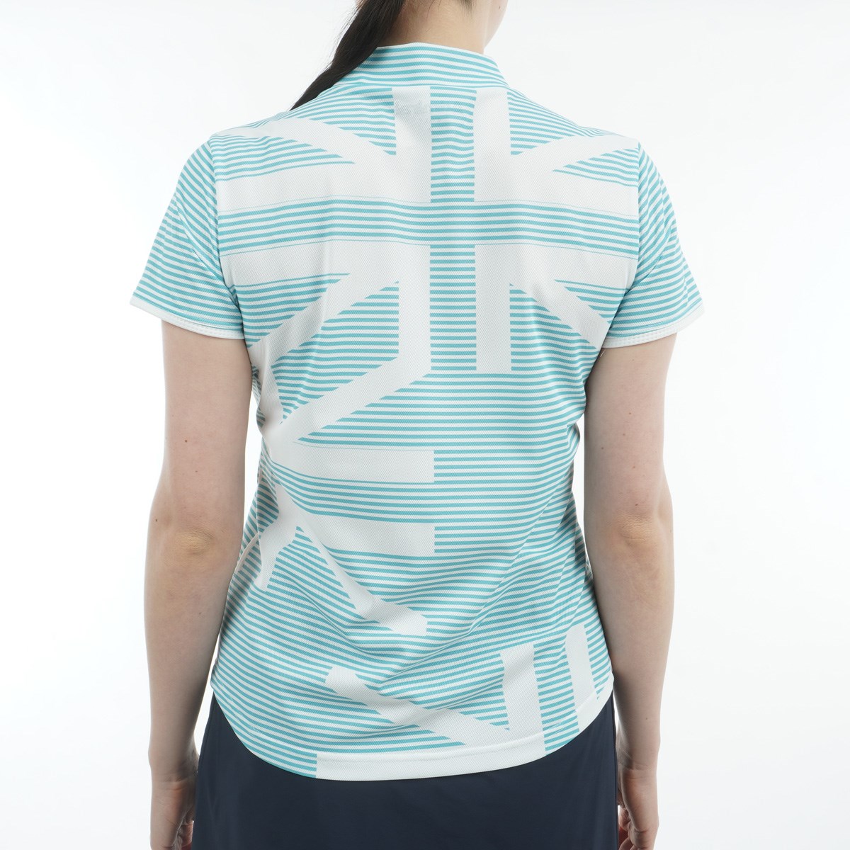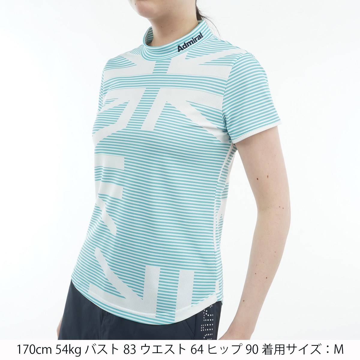 アドミラル Admiral ストレッチ スパッシー ユニオンジャック半袖モックシャツ LL ライトグリーン レディス