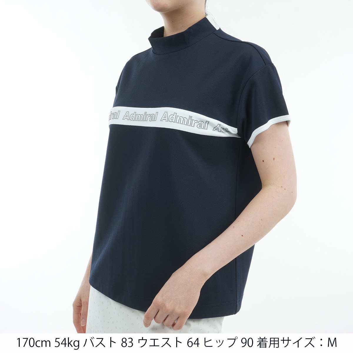 アドミラル Admiral ストレッチ ドロストヘム 鹿の子半袖モックシャツ L ネイビー レディス