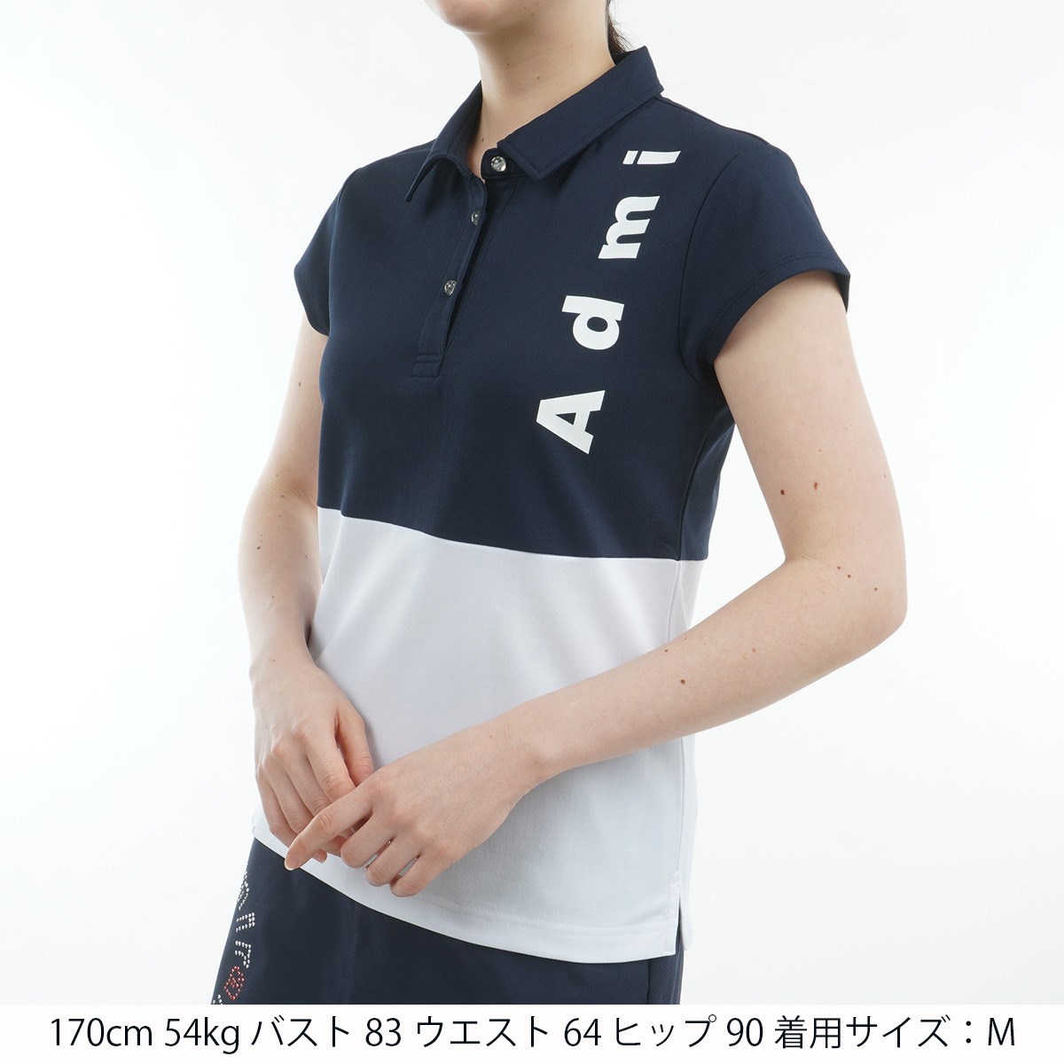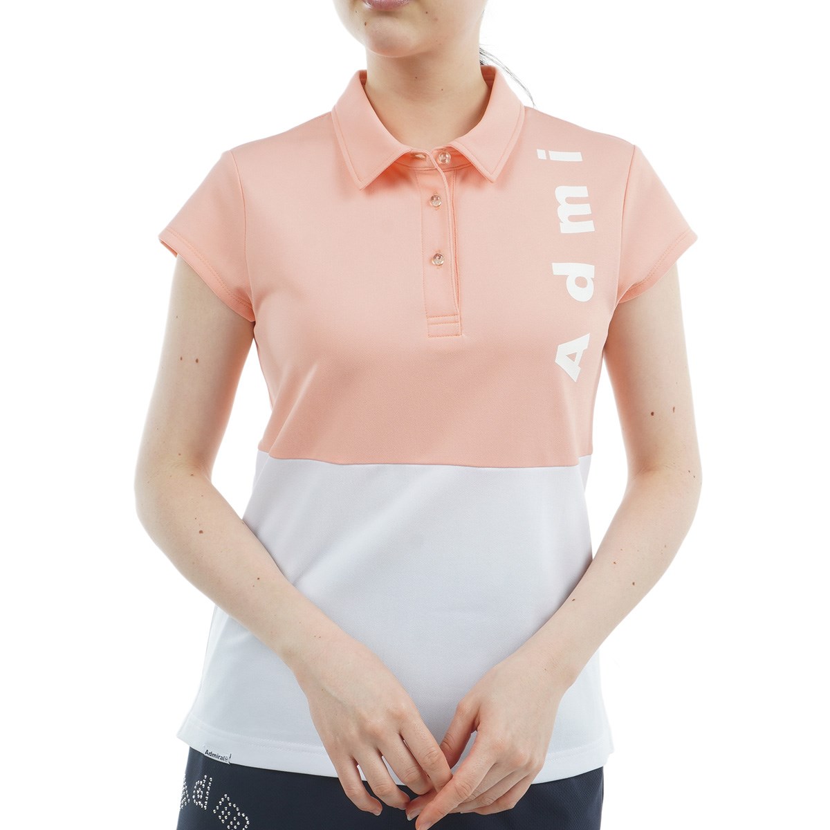 アドミラル Admiral ストレッチ 鹿の子ブロッキング キャップスリーブ半袖ポロシャツ M ネイビー レディス