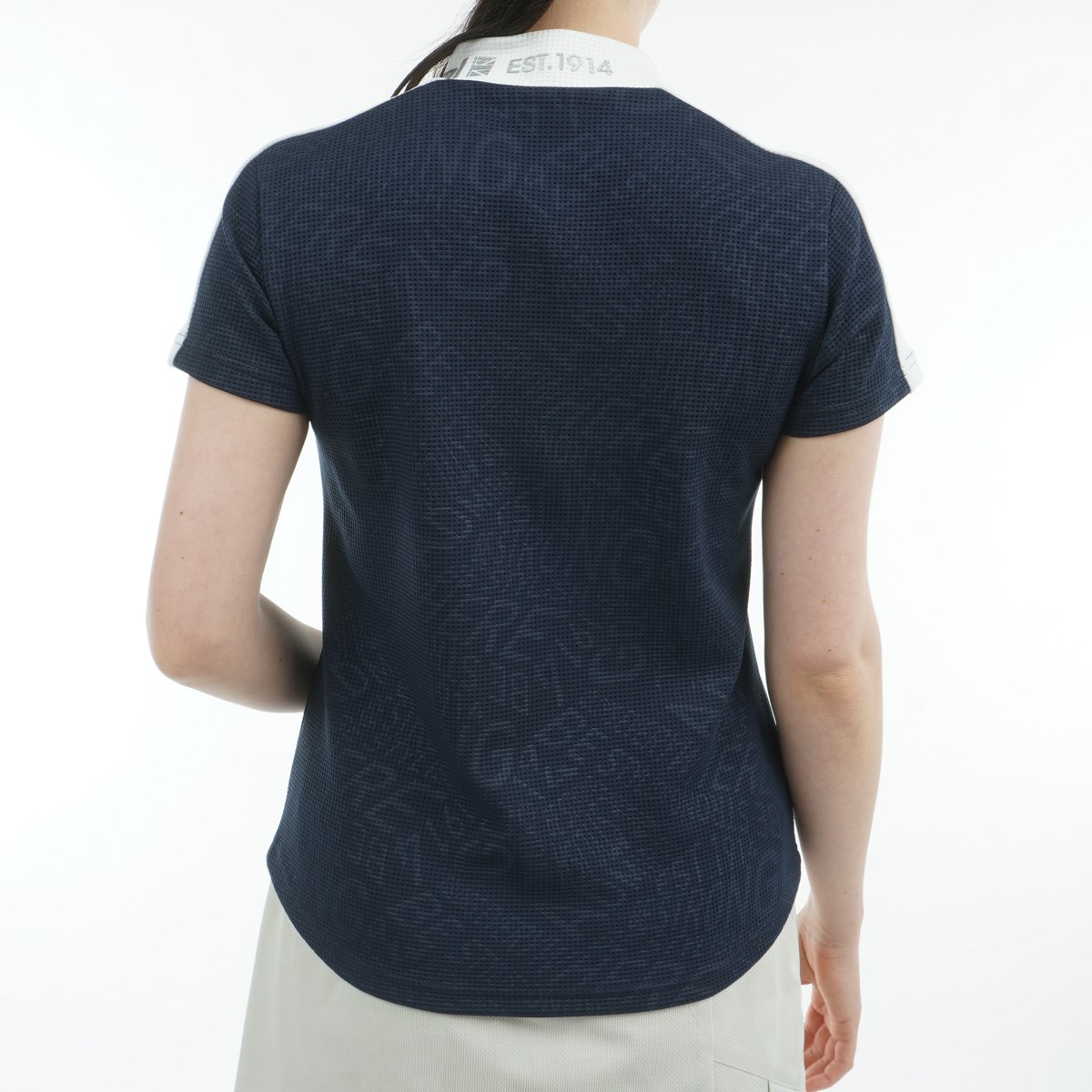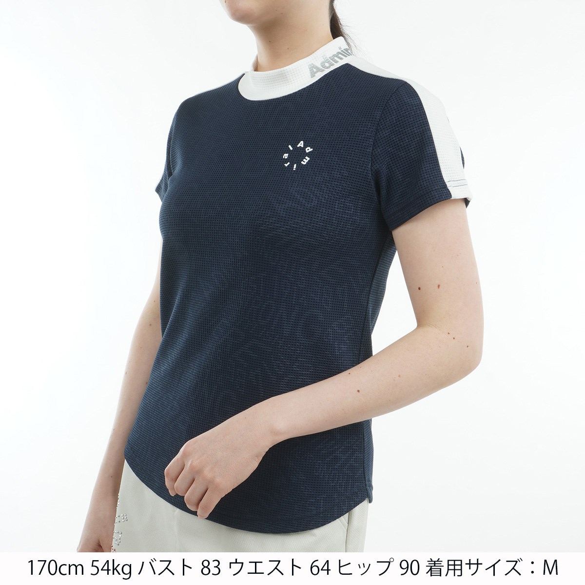 アドミラル Admiral ストレッチ ジオメタリックロゴ 半袖モックシャツ L ネイビー レディス