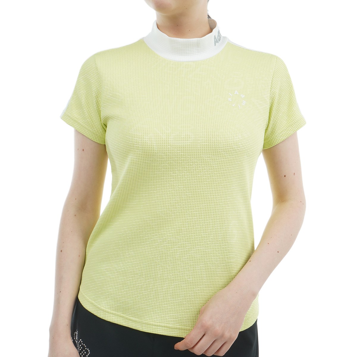 肌に触れるナイロンの冷感性が特徴で、快適な着心地を提供する、接触冷感 ワンポイント半袖モックシャツ。