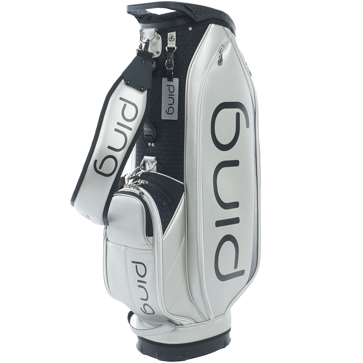 ・デザイン「本格派な形状と大きなpingロゴ使いでスポーティーに仕上げながら、シルバーのファスナーと引手が女性らしいキャディバッグ。」