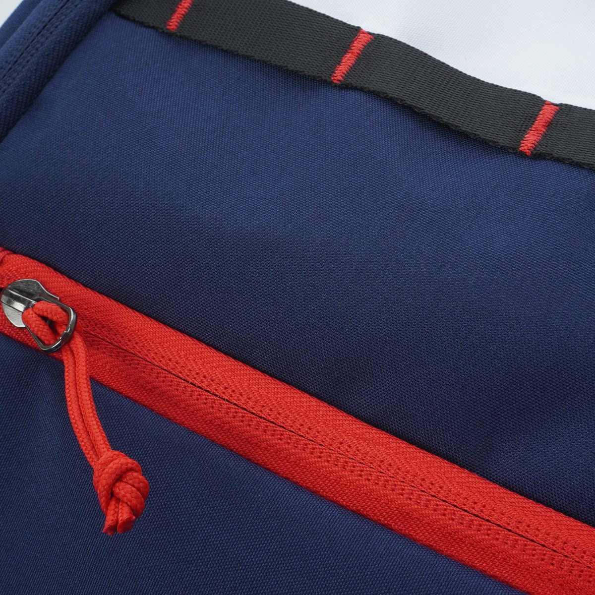 ●アウトにカラビナなどをひっかけることができるテープとファスナーポケット付き