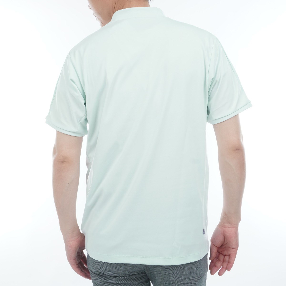 汗を吸収した時にクール感を得られるICELIVEを使用したモックネック半袖シャツ。