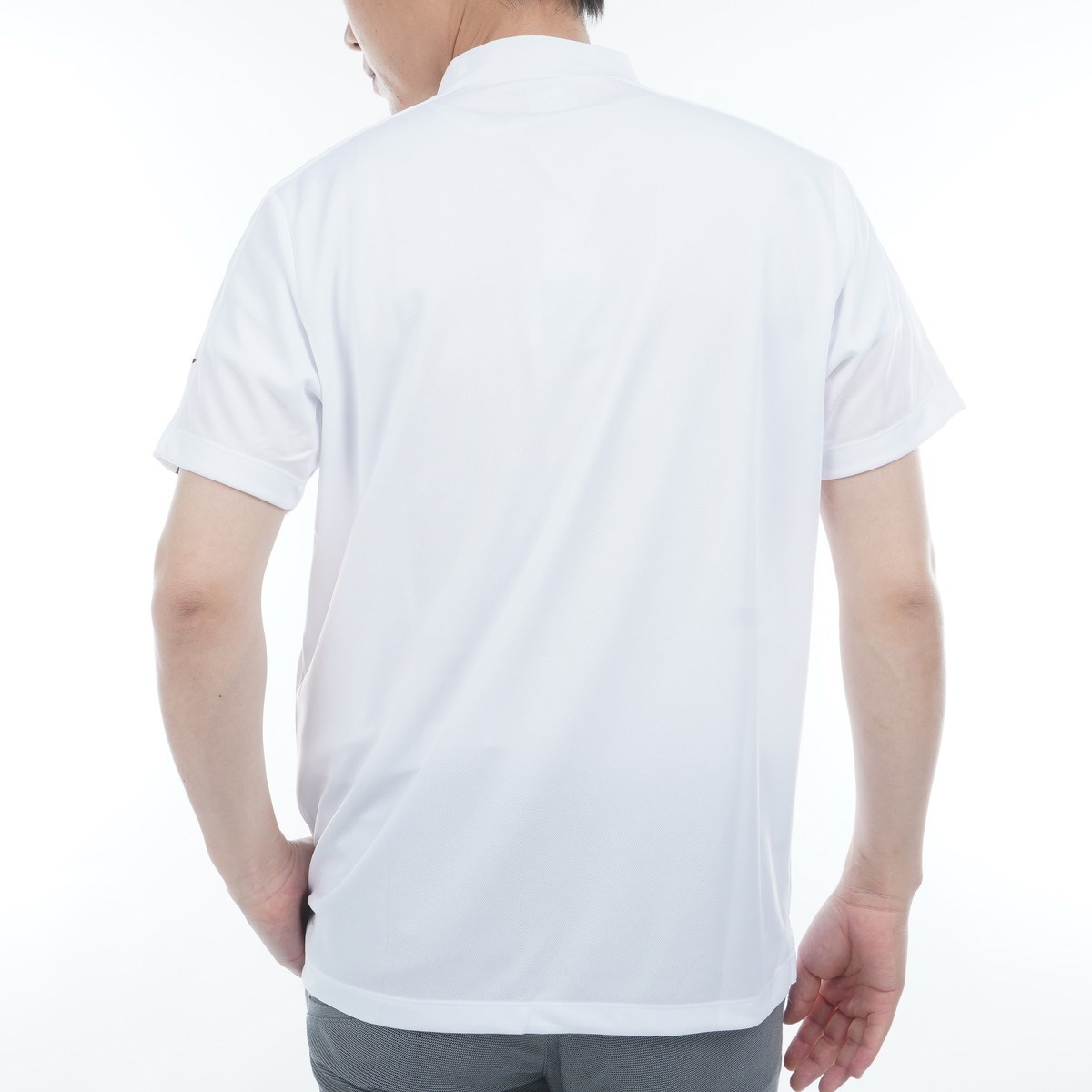吸水速乾と通気性に優れた鹿の子を使用したモックネック半袖シャツ。