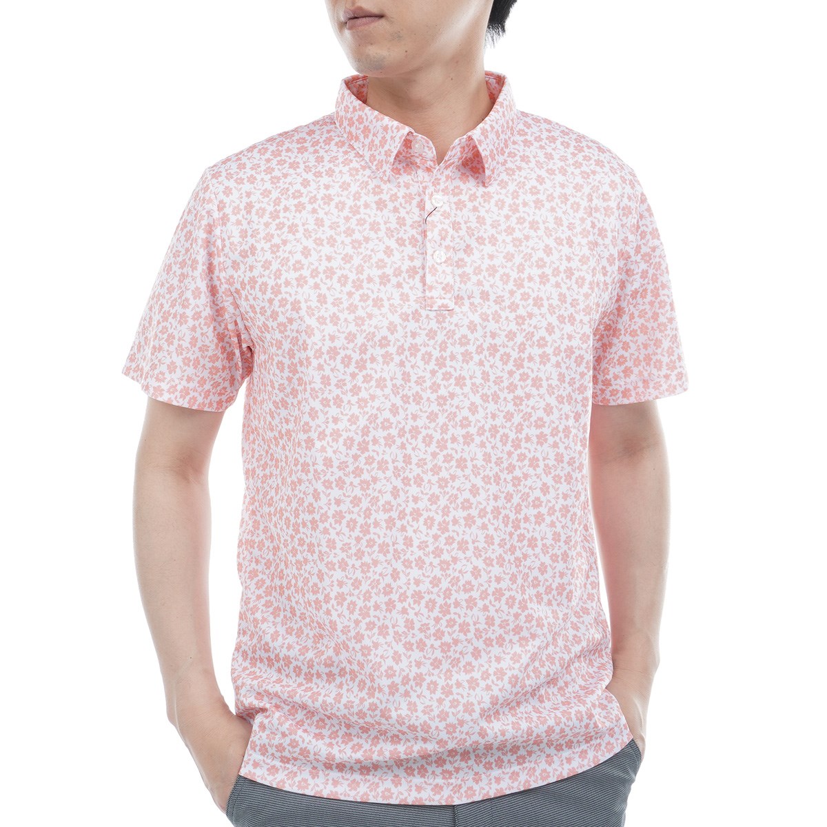 細やかでさりげない小花柄が無地のような感覚でシンプルに着れる、ベーシックなシルエットの半袖ポロシャツ。