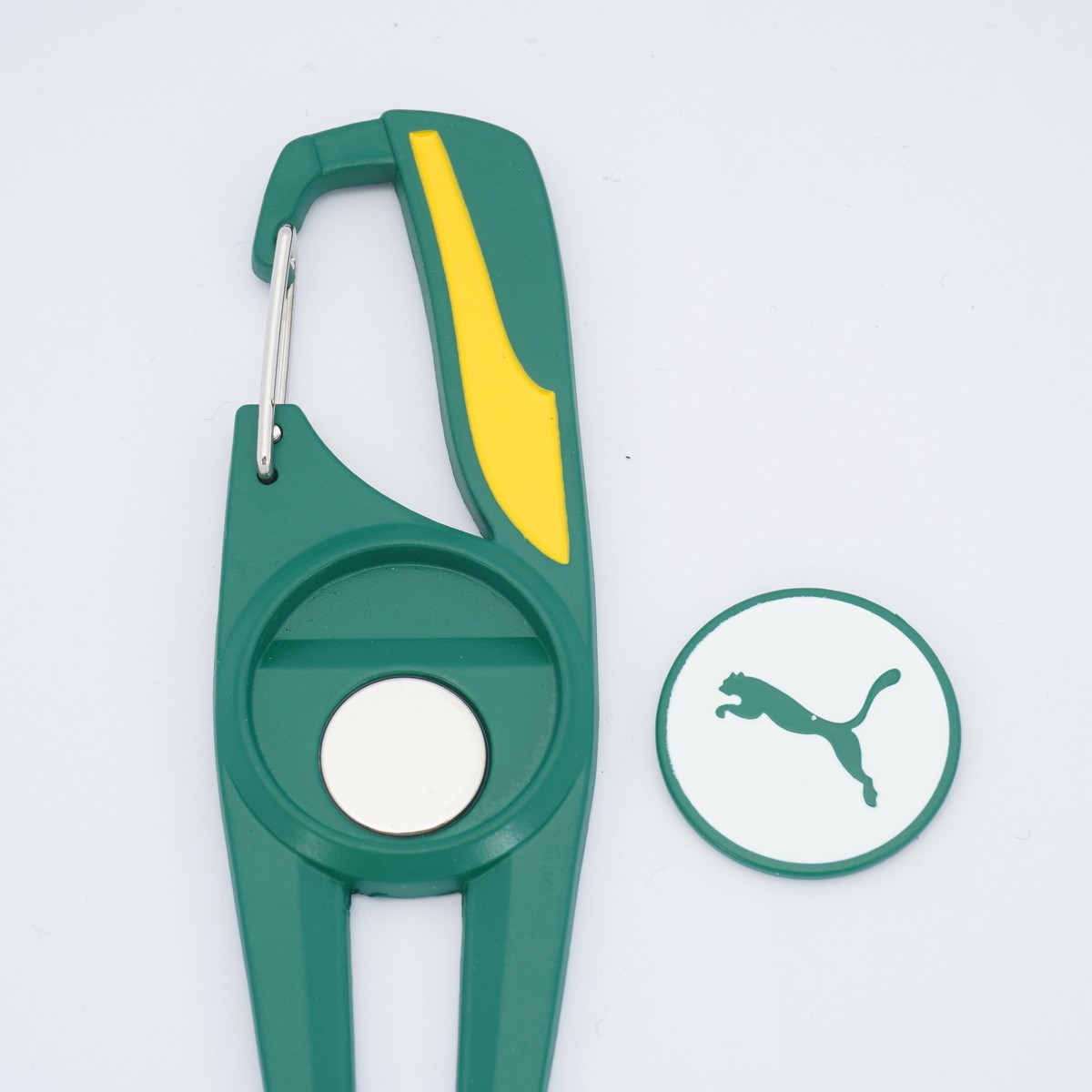 グリーンフォーク、マーカー、カラビナが一体となったゴルフアイテム。