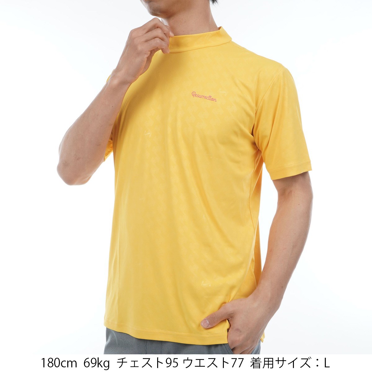 レザレクション Resurrection GMエンボス ストレッチ モックネック半袖シャツ M イエロー