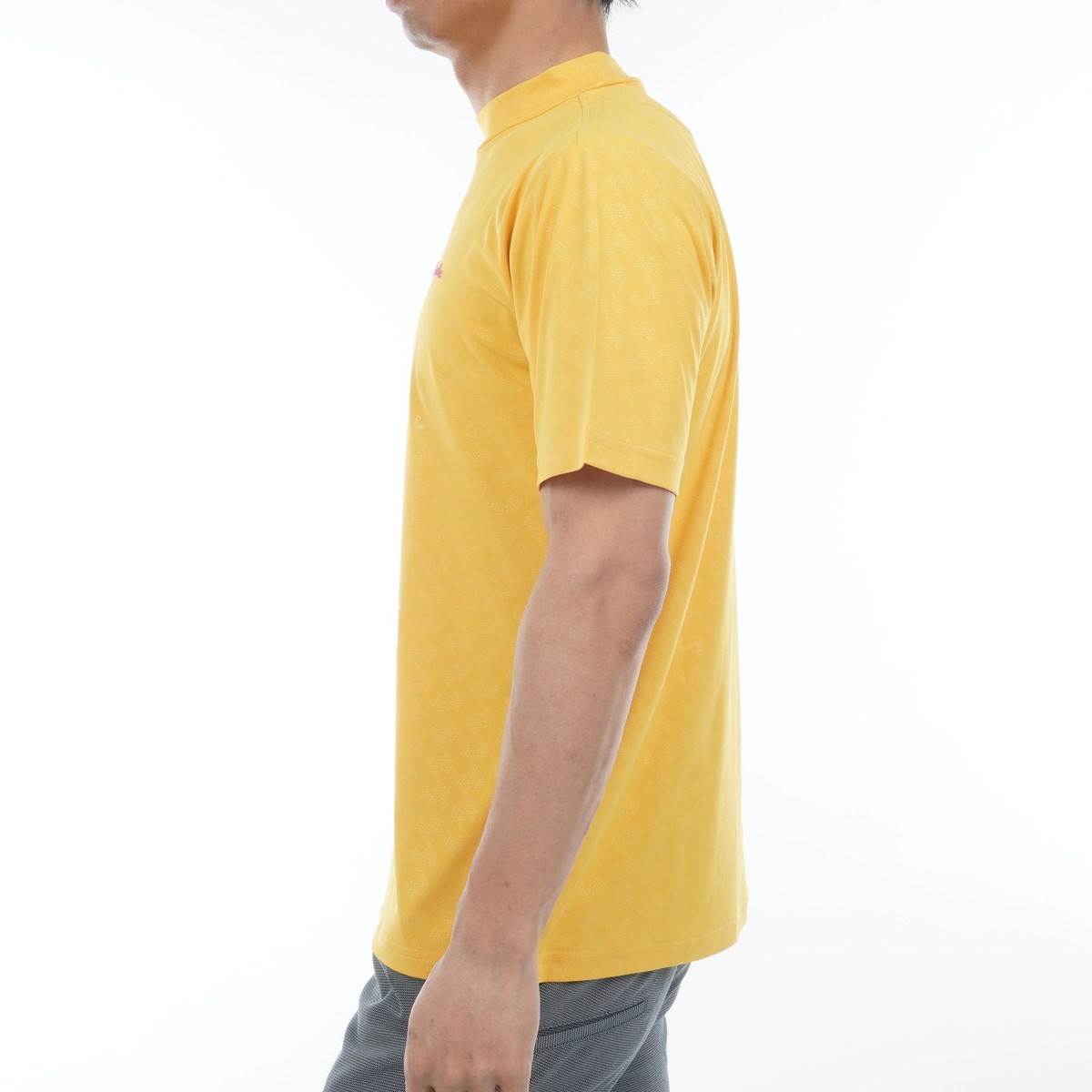 キラッと浮き出るレザレクション柄でシンプル見えする万能モックネック半袖シャツ