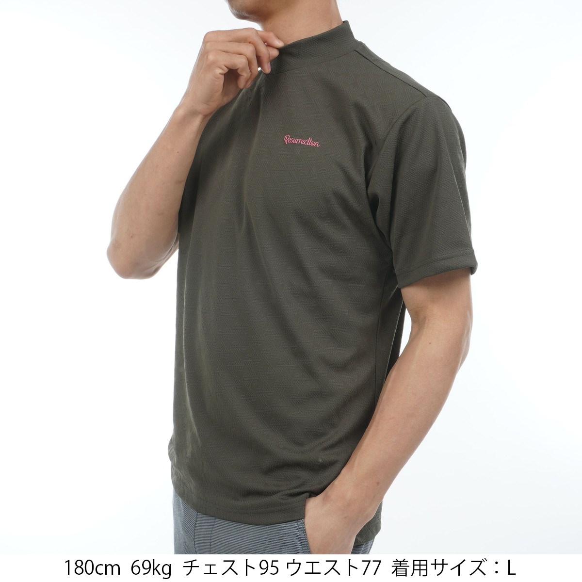 レザレクション Resurrection GMジャカード ストレッチ モックネック半袖シャツ L カーキ