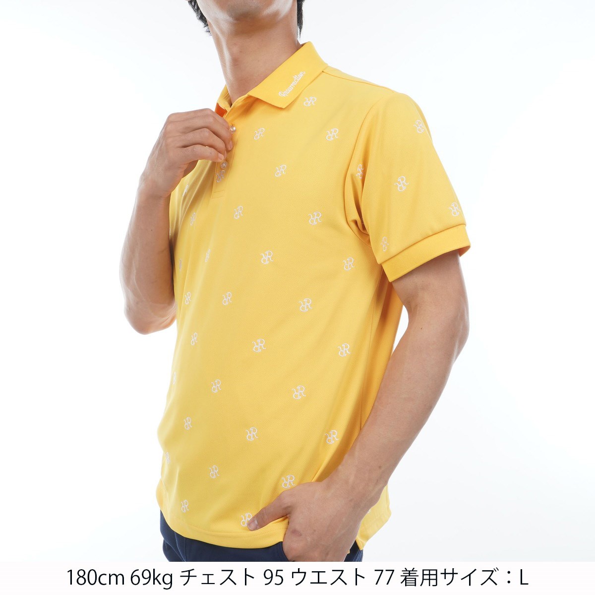 レザレクションのRRロゴを刺繍で総柄表現をした贅沢なポロシャツをご紹介いたします。