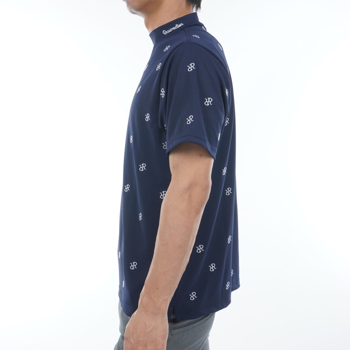 レザレクションのRRロゴを刺繍で総柄表現をした贅沢なモックネックをご紹介いたします。