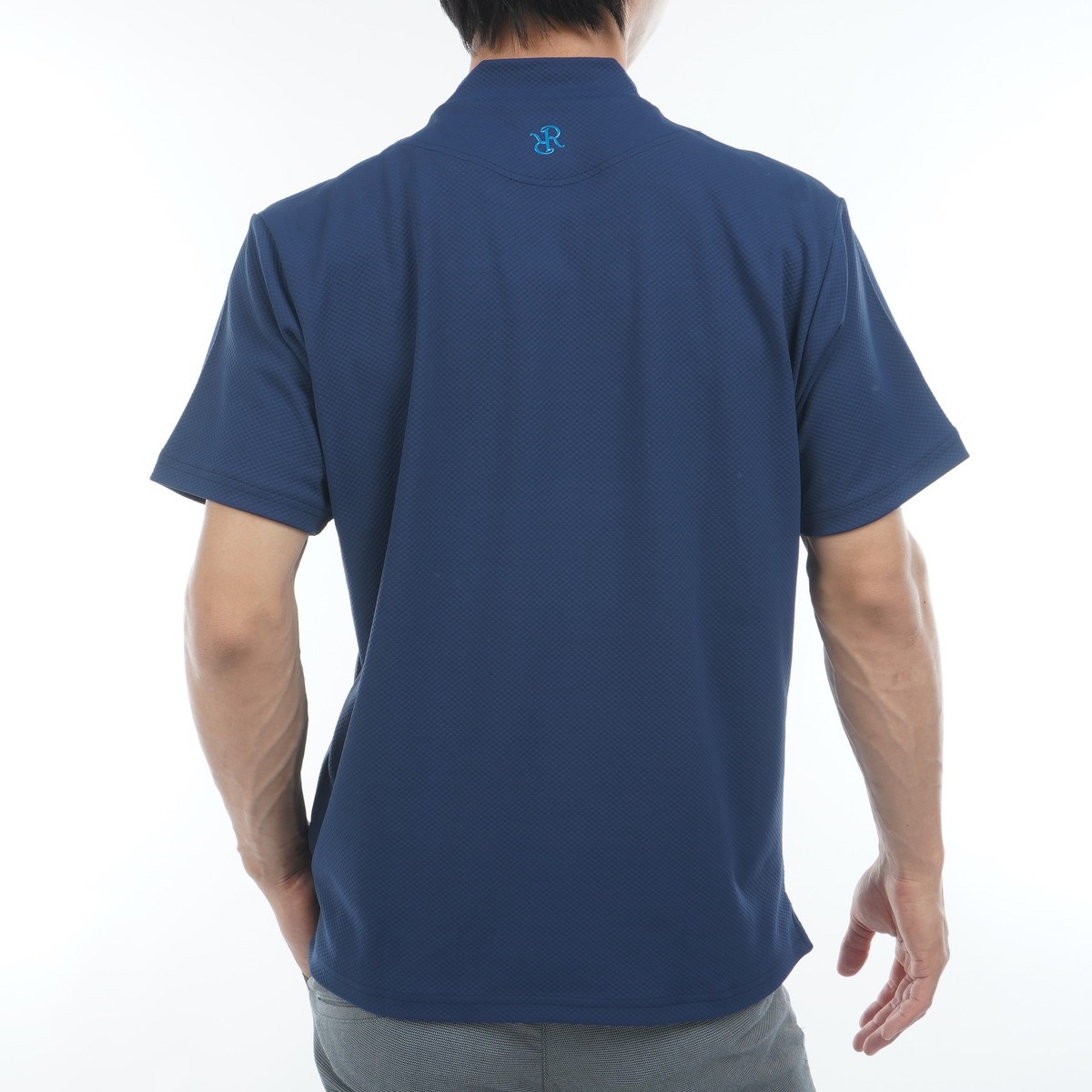 シンプルデザインのモックネック半袖シャツ