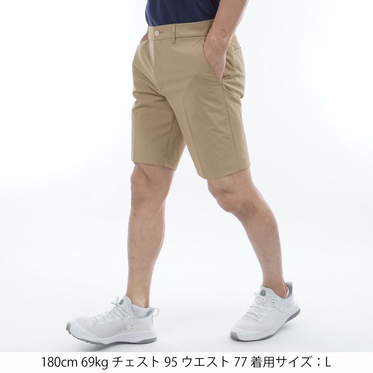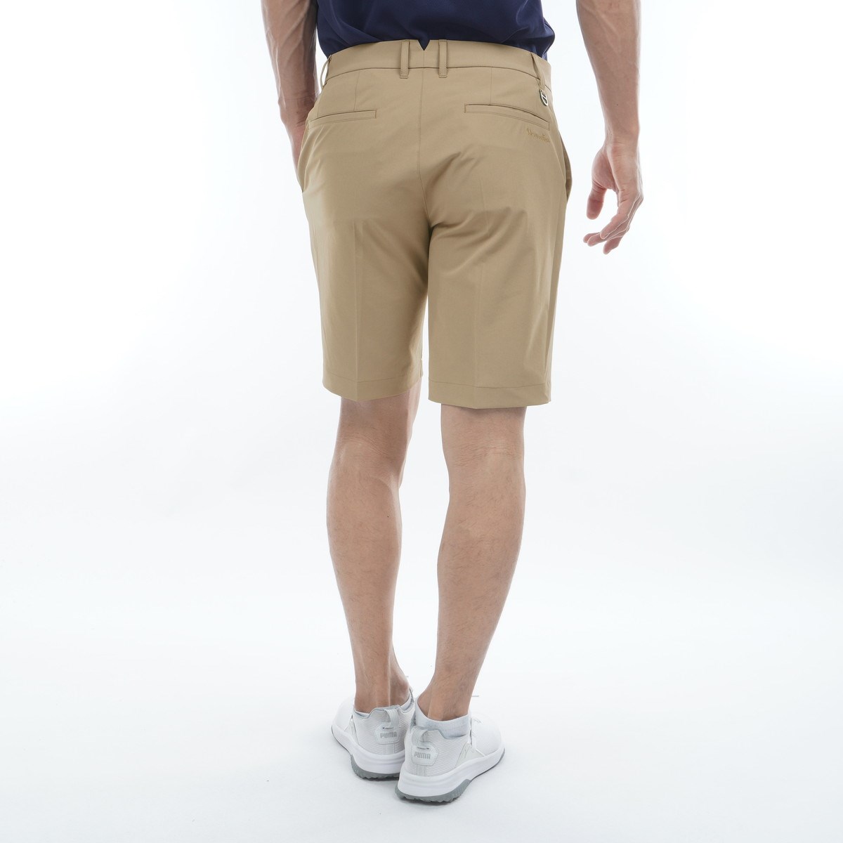 センタープリーツ加工を施し、スラックスのようなキチンと感と上品さを併せ持っているので、目上の方とのラウンドや名門ゴルフ場でも悩む事なくご着用頂けます。