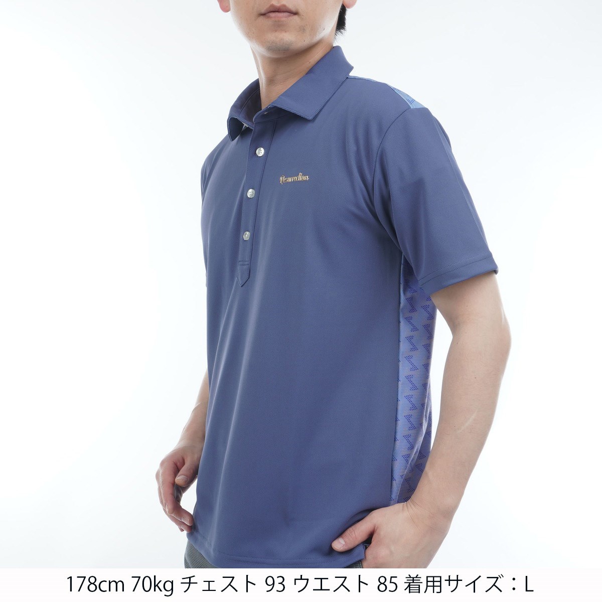 レザレクション Resurrection バックGM ワイド半袖ポロシャツ L ドーンブルー