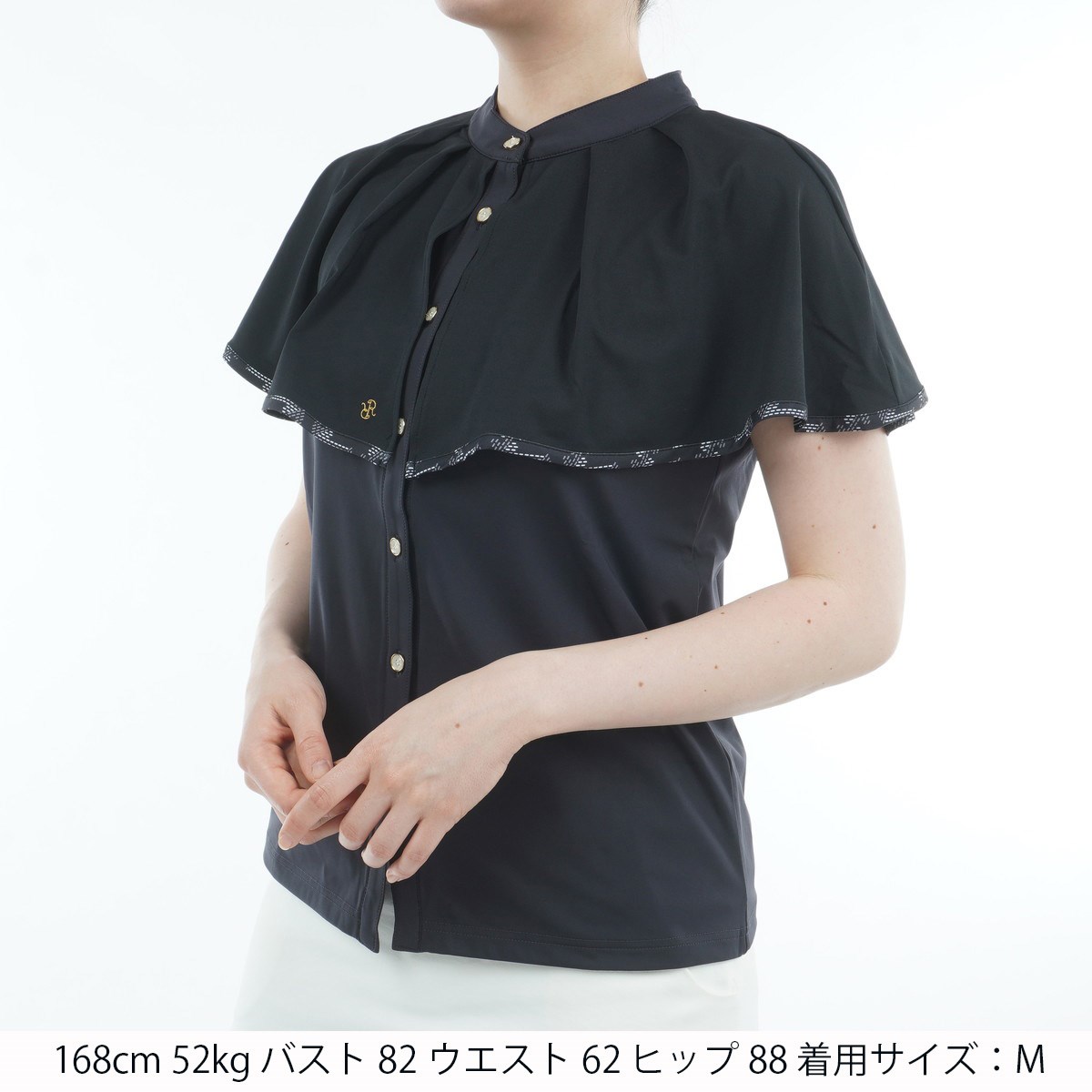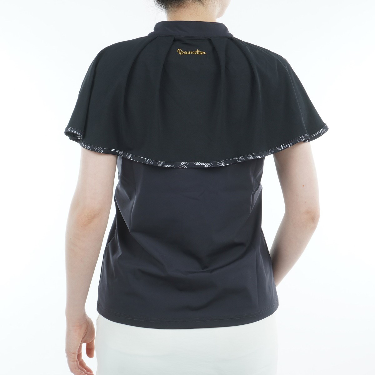 レザレクション Resurrection ストレッチ ケープ スタンドカラー半袖シャツ L ブラック レディス