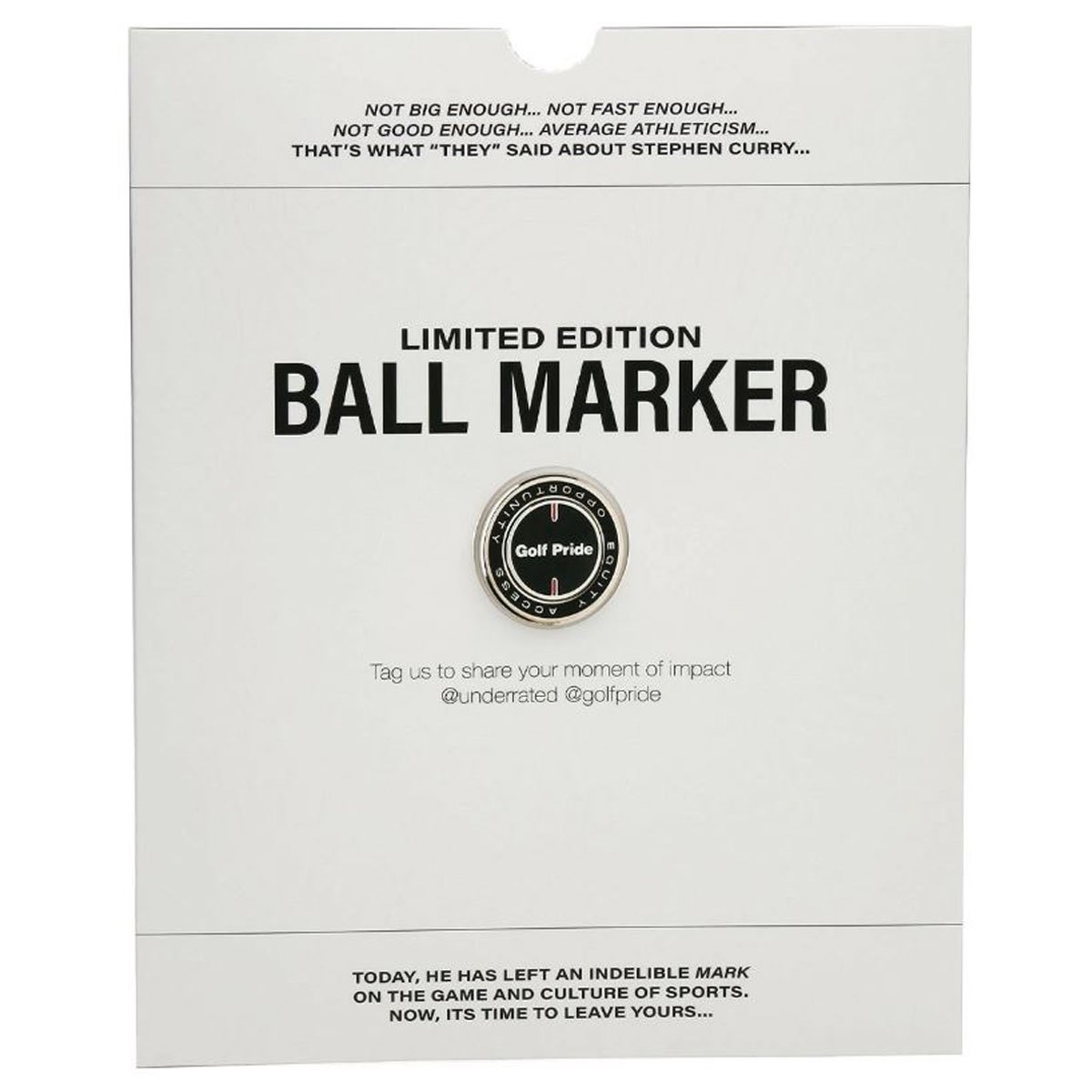 NBAのスーパースター、ステフィン・カリーのアンダーレイディドゴルフ(Underrated Golf)を支援するため、ゴルフプライドとタッグを組んで開発されたグリップが発売され、正規販売として日本では100セット(1セット14本)限定で発売される。