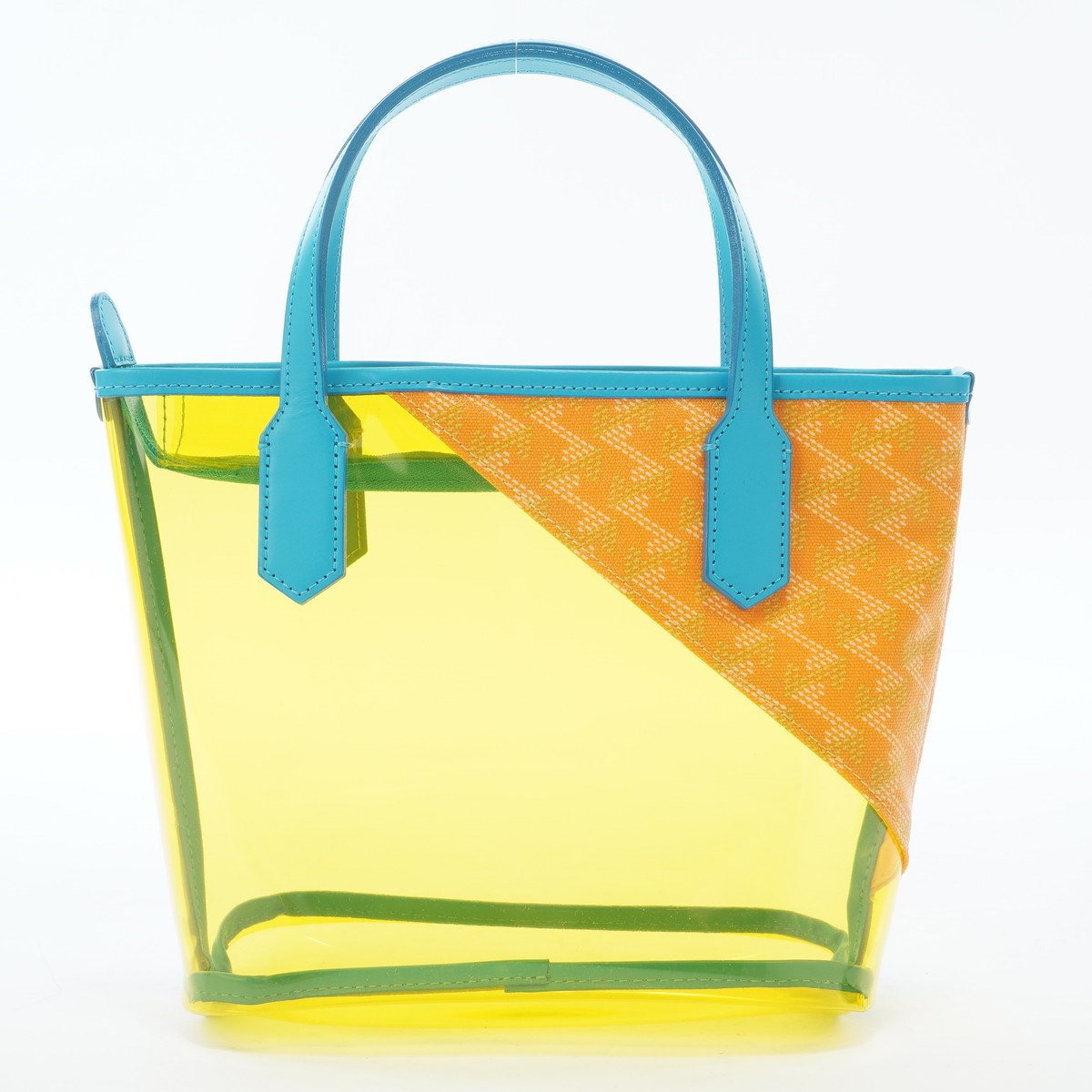 せっかくクリアバッグを作るなら遊びの効いた配色が良いというアイデア。
