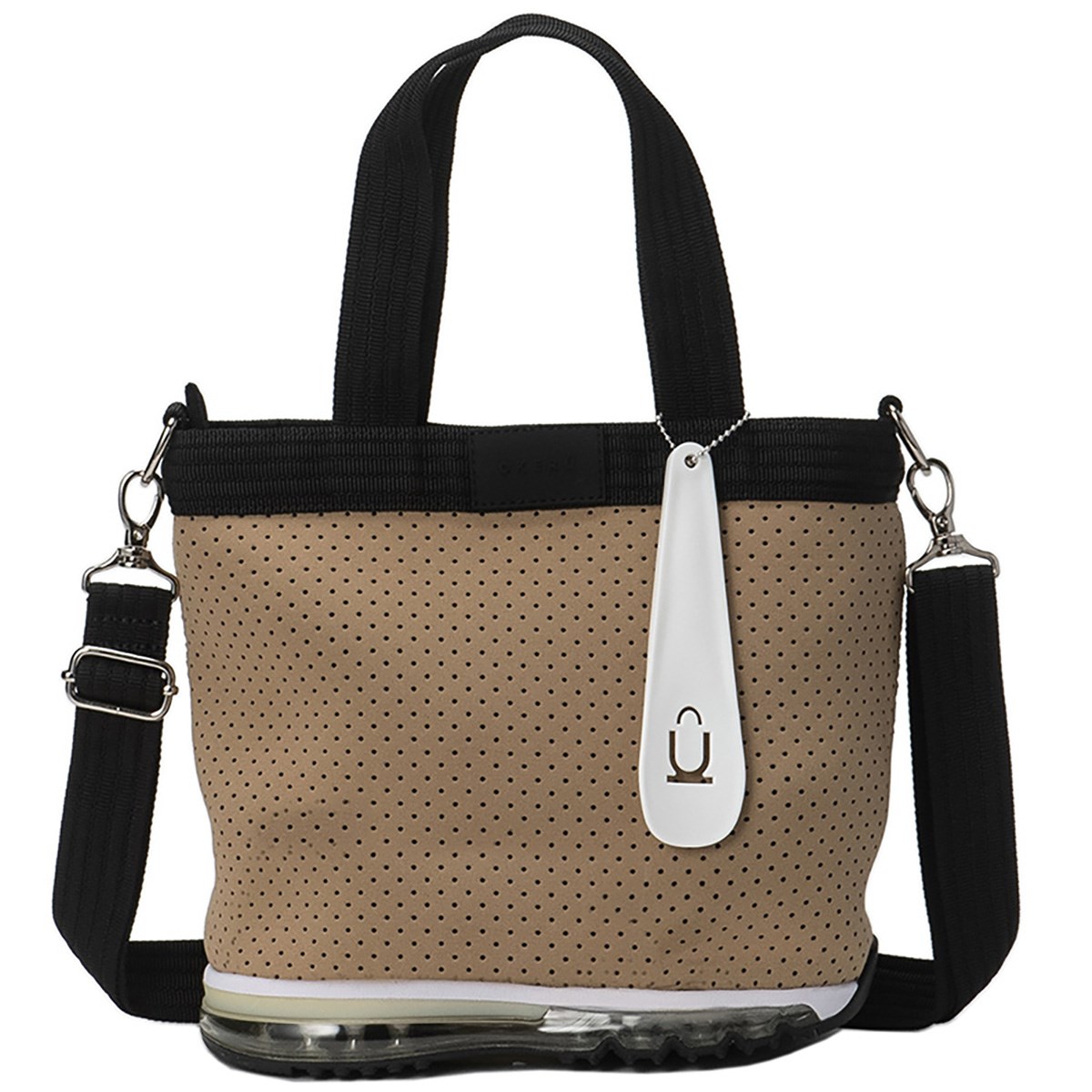取り外し可能なショルダーストラップも付属し、コーディネートやお出掛け先によって使い方が変えられるところもうれしいポイント。