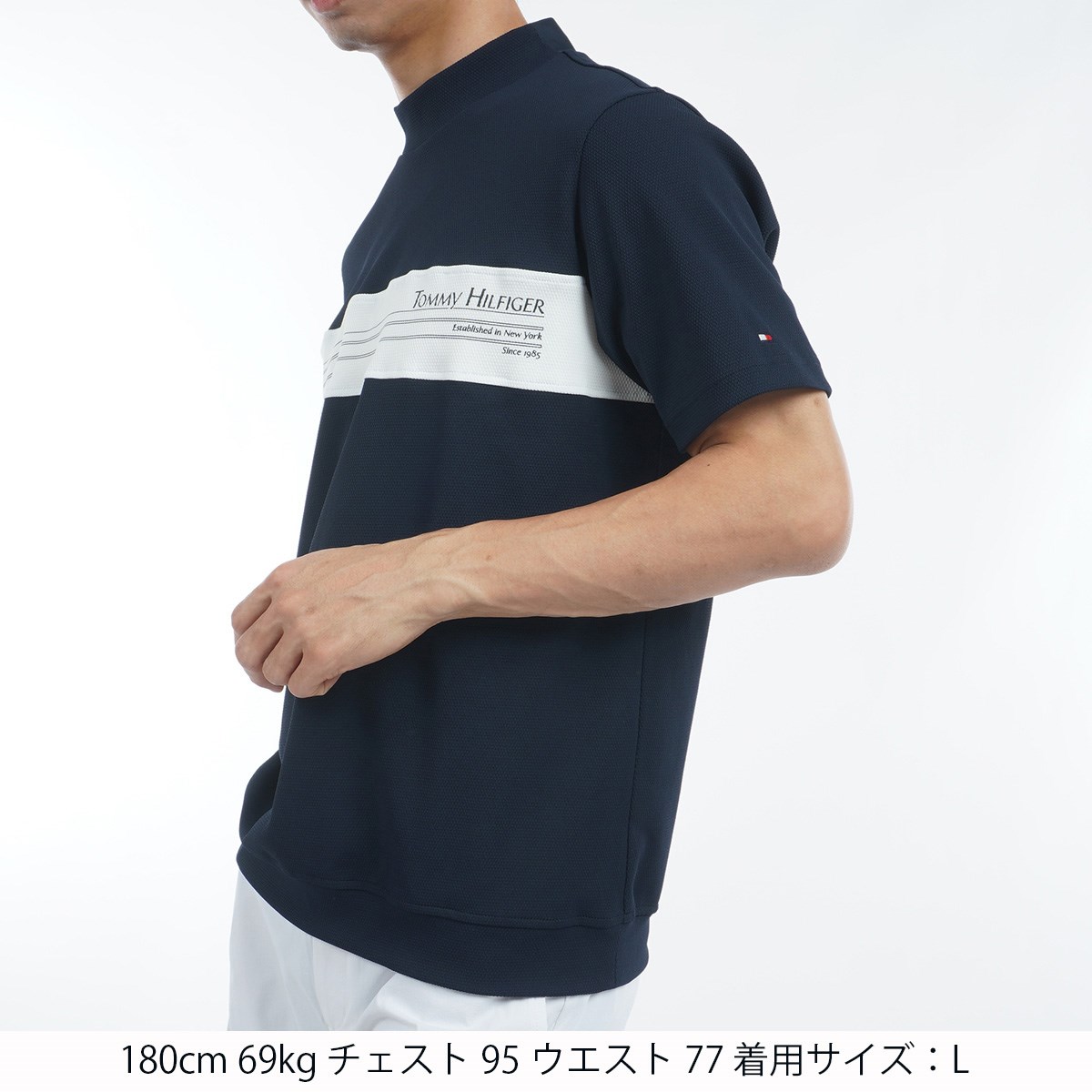 トミー ヒルフィガー ゴルフ TOMMY HILFIGER GOLF カラーブロック 半袖モックネックシャツ M ネイビー