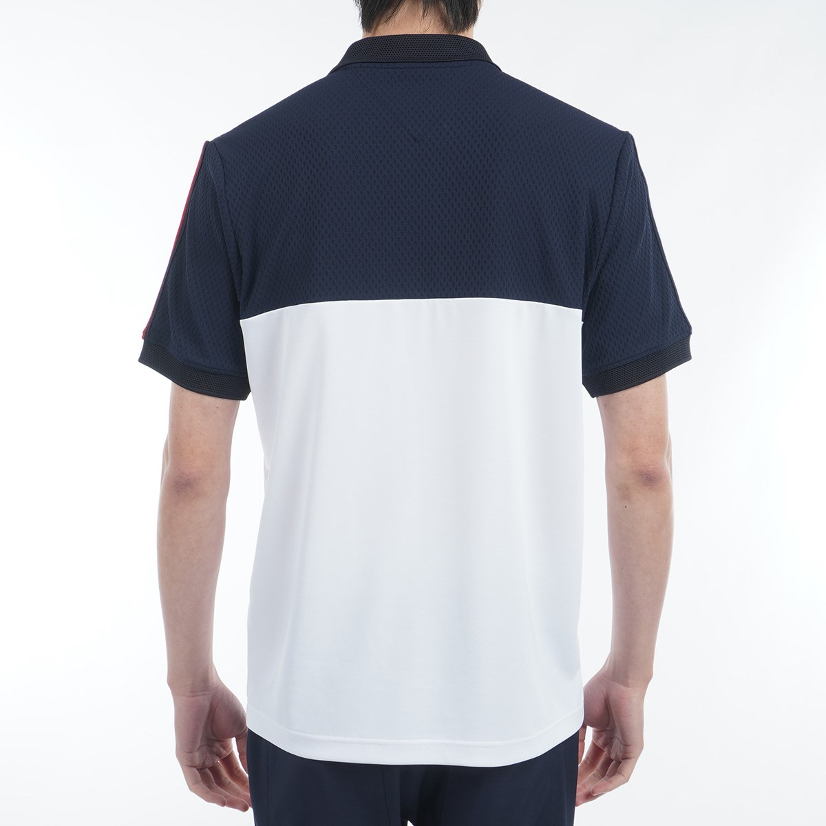 吸水速乾機能を備え、汗を素早く吸収し快適さを維持する、カラーブロック半袖ポロシャツ。