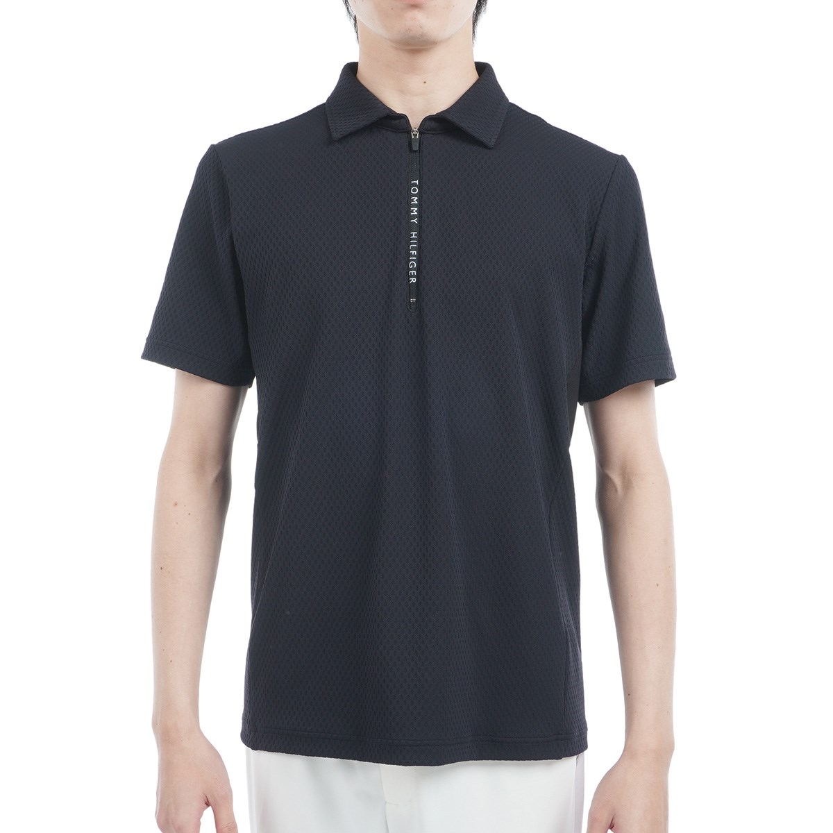 トミー ヒルフィガー ゴルフ TOMMY HILFIGER GOLF ストレッチ リンクスジャガード ハーフジップ半袖ポロシャツ L ライトグレー