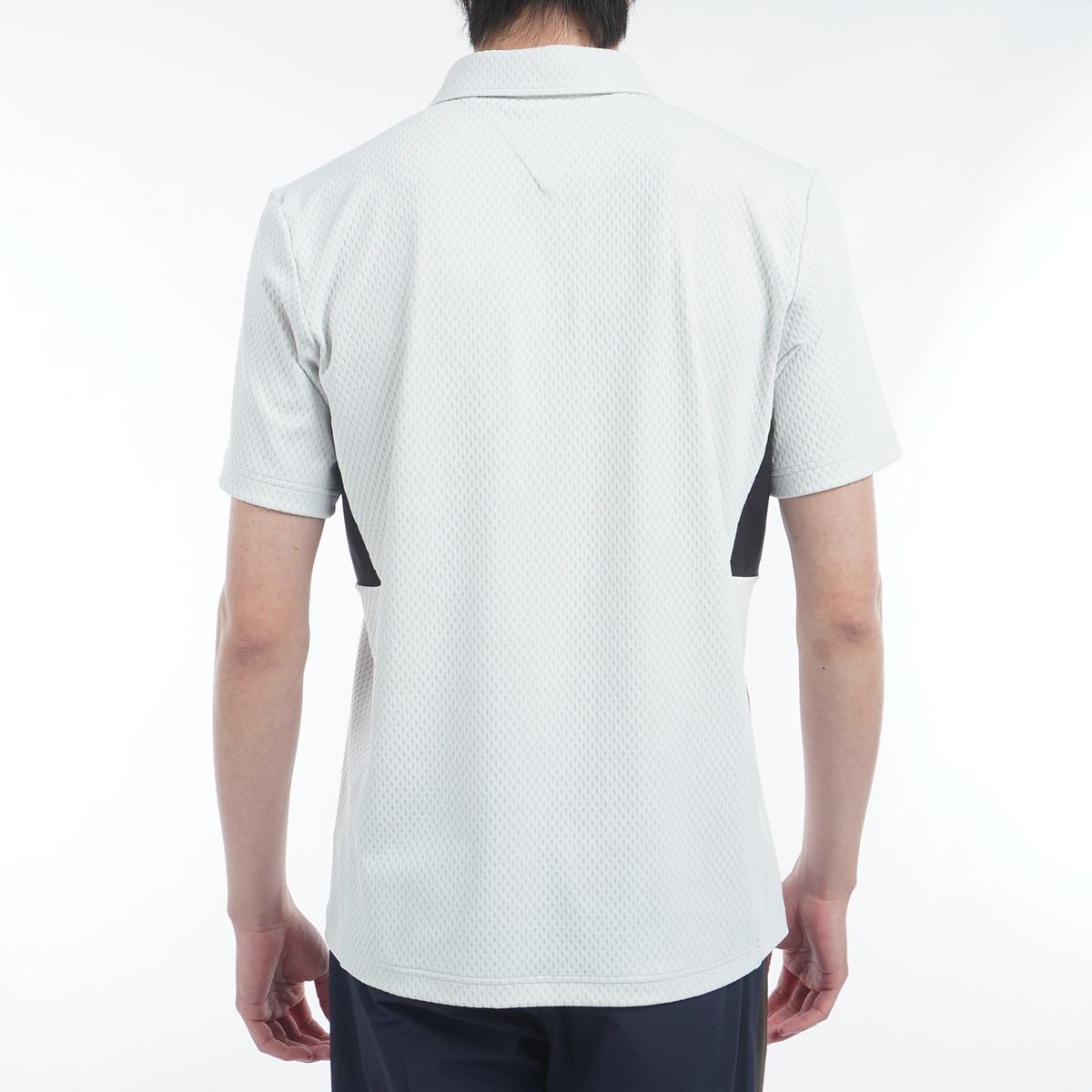 北陸産地で編み上げたリンクスジャガード素材を使用した、ハーフジップ半袖ポロシャツ。