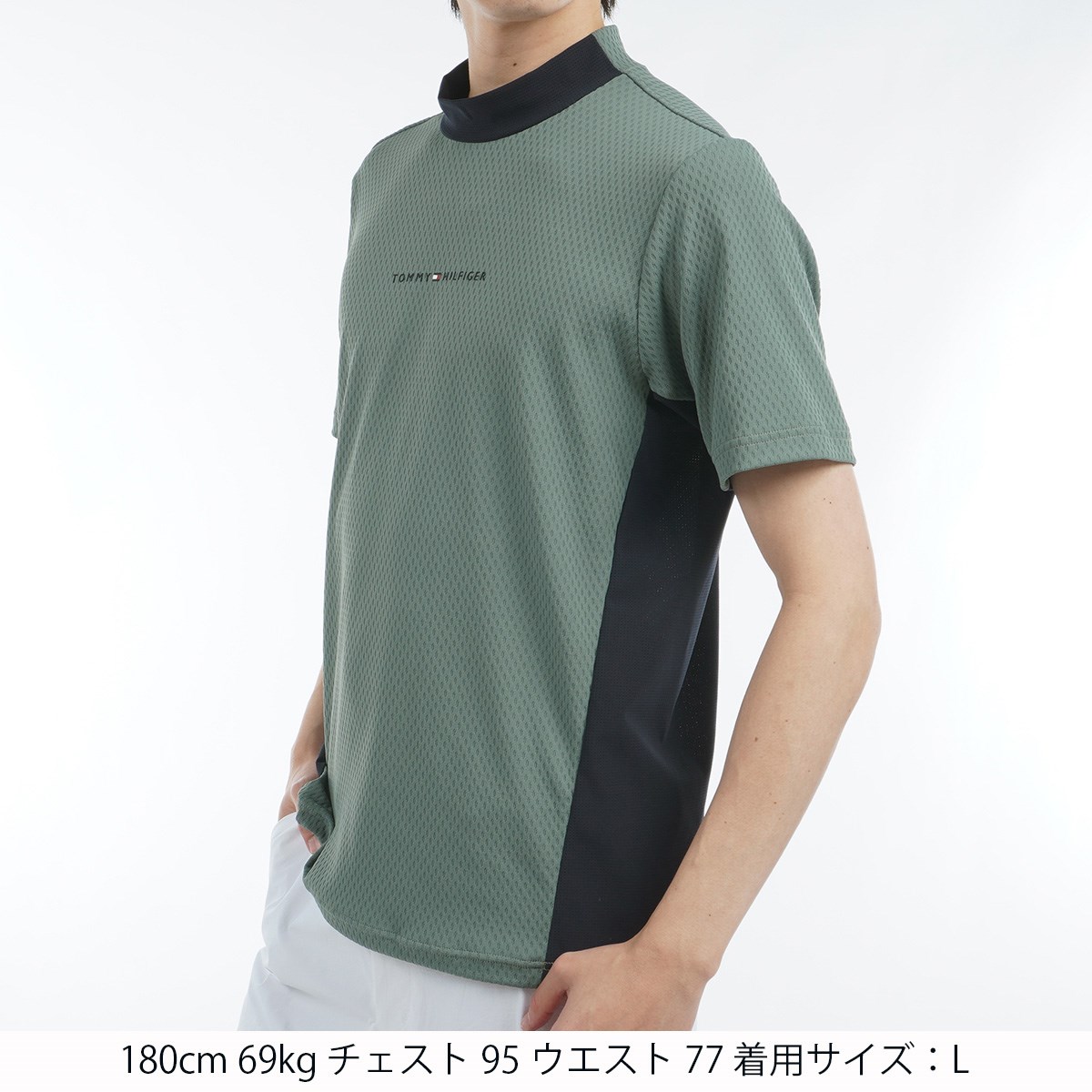 トミー ヒルフィガー ゴルフ TOMMY HILFIGER GOLF ストレッチ ハイブリッド モックネック半袖シャツ 3L オリーブ