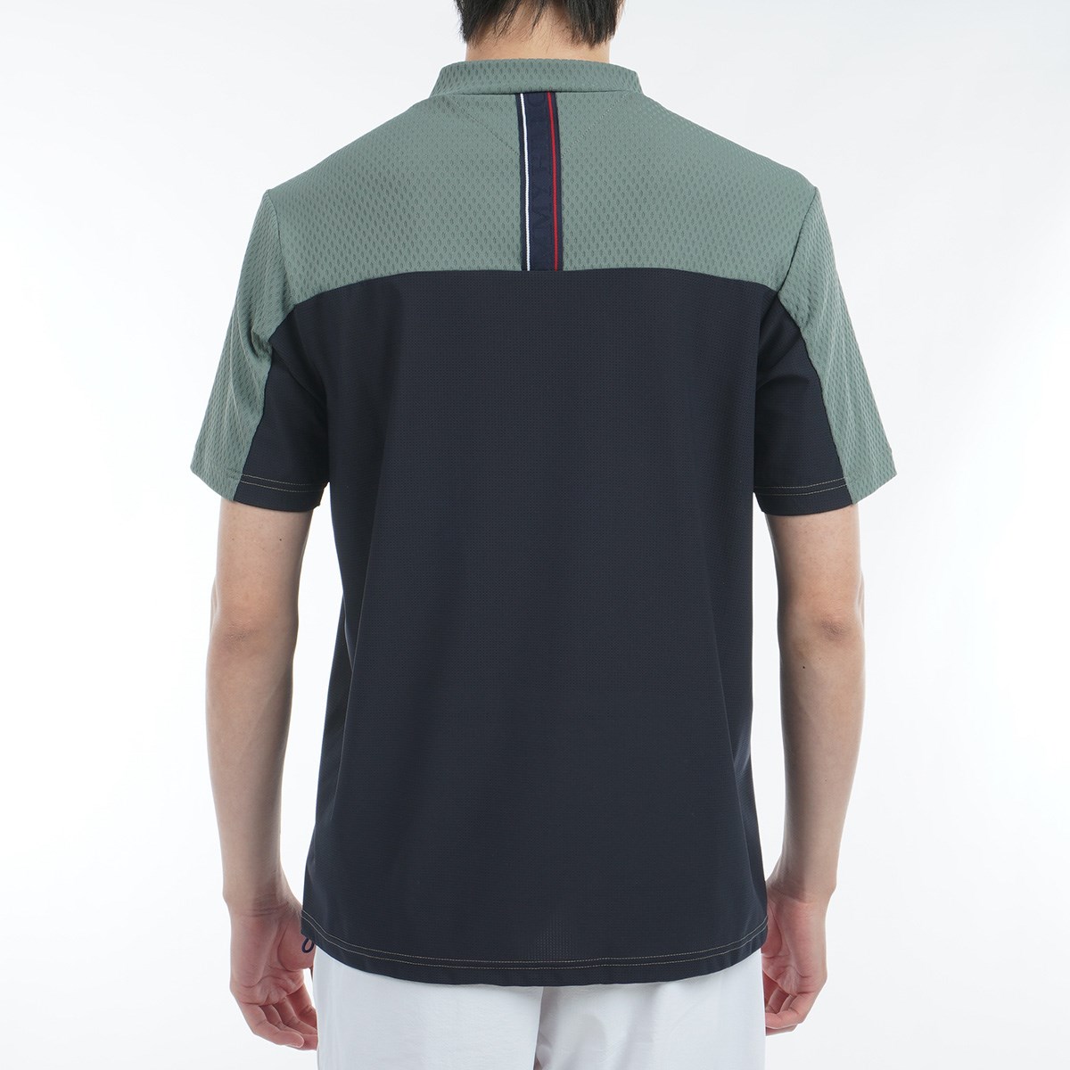スポーティーなデザインのモックネックシャツで、機能性とスタイリッシュさを兼ね備えた一着です。【洗濯仕様】