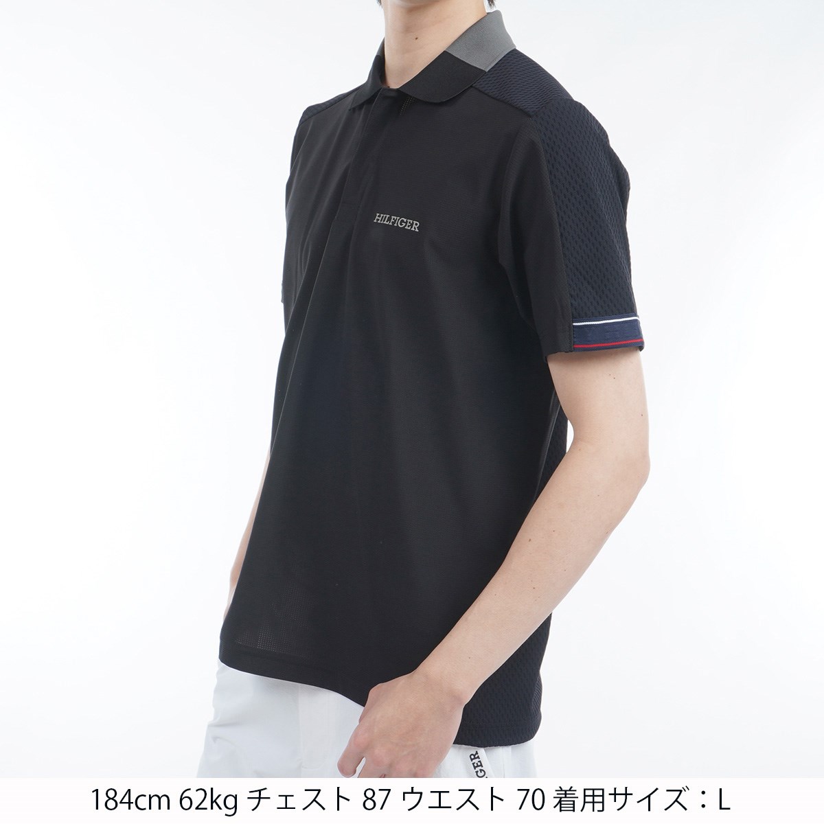 トミー ヒルフィガー ゴルフ TOMMY HILFIGER GOLF ストレッチ ハイブリッド 半袖ポロシャツ M ブラック