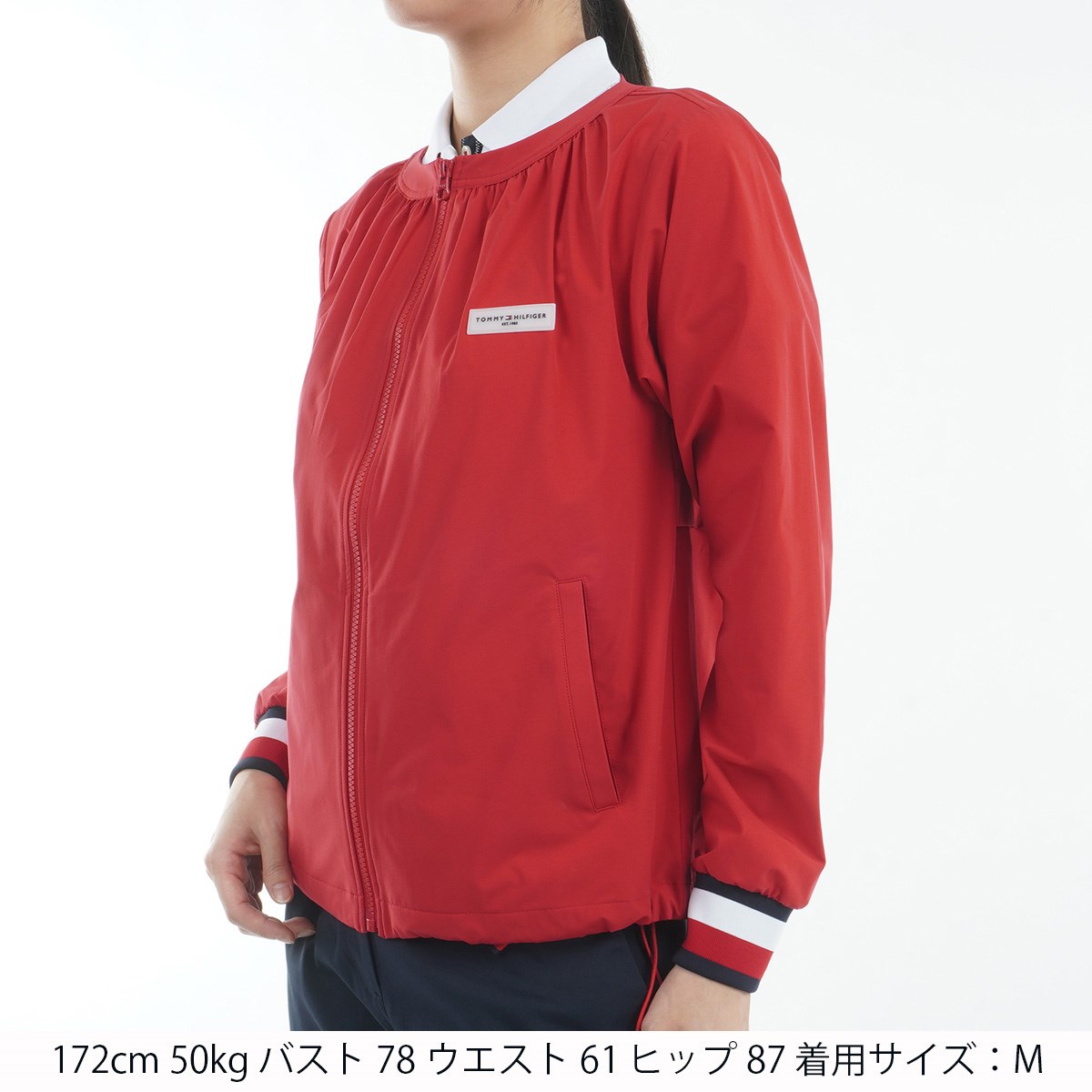 トミー ヒルフィガー ゴルフ TOMMY HILFIGER GOLF ストレッチ クラシック ノーカラーブルゾン S レッド レディス