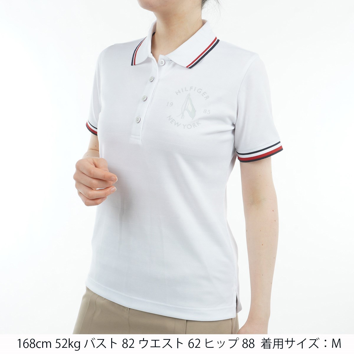 トミー ヒルフィガー ゴルフ TOMMY HILFIGER GOLF サークルロゴ ワンポイント半袖ポロシャツ L ホワイト レディス