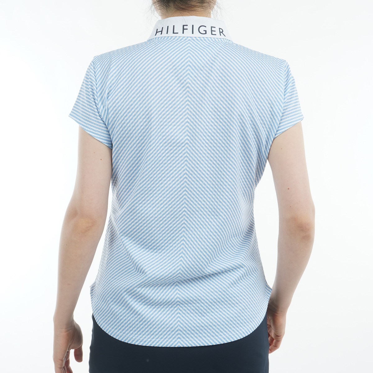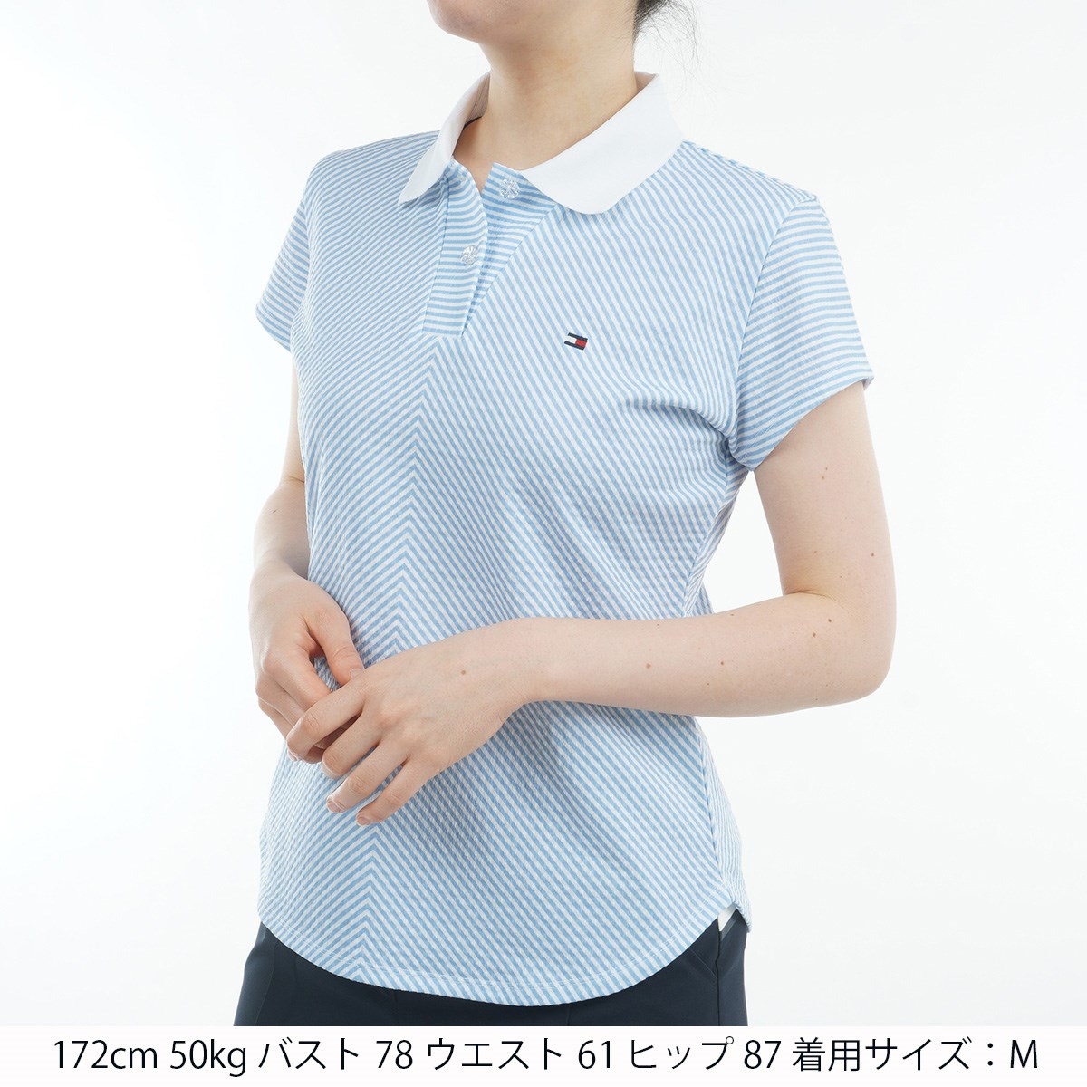 トミー ヒルフィガー ゴルフ TOMMY HILFIGER GOLF ストライプ キャップスリーブポロシャツ L サックス レディス