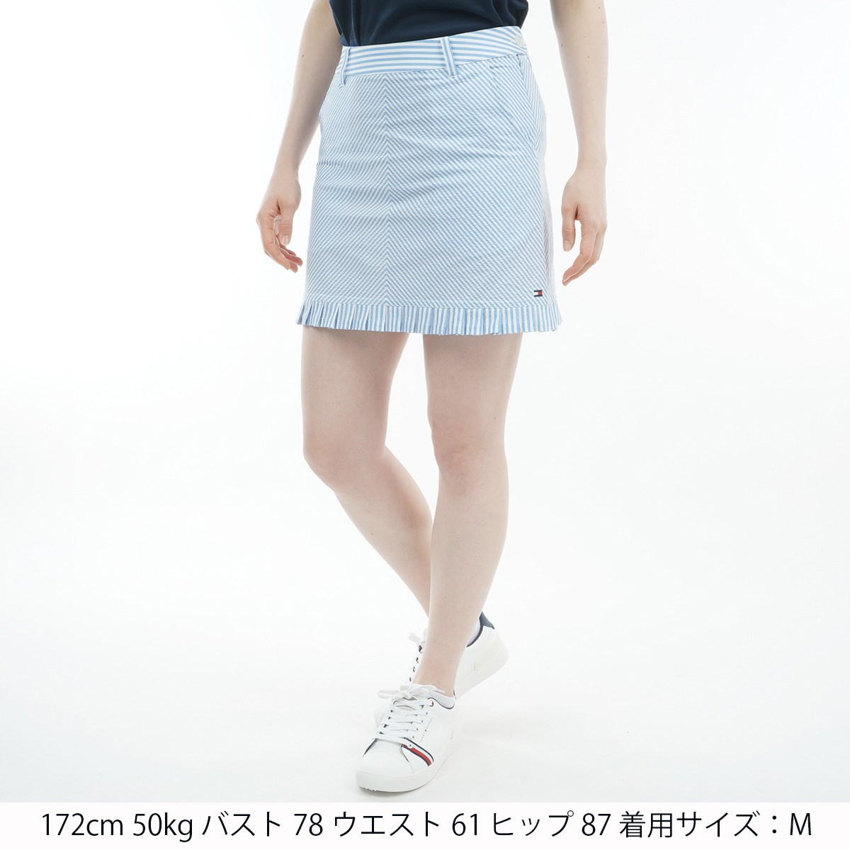 トミー ヒルフィガー ゴルフ TOMMY HILFIGER GOLF ストレッチ ストライプ ミニフリルスカート M サックス レディス