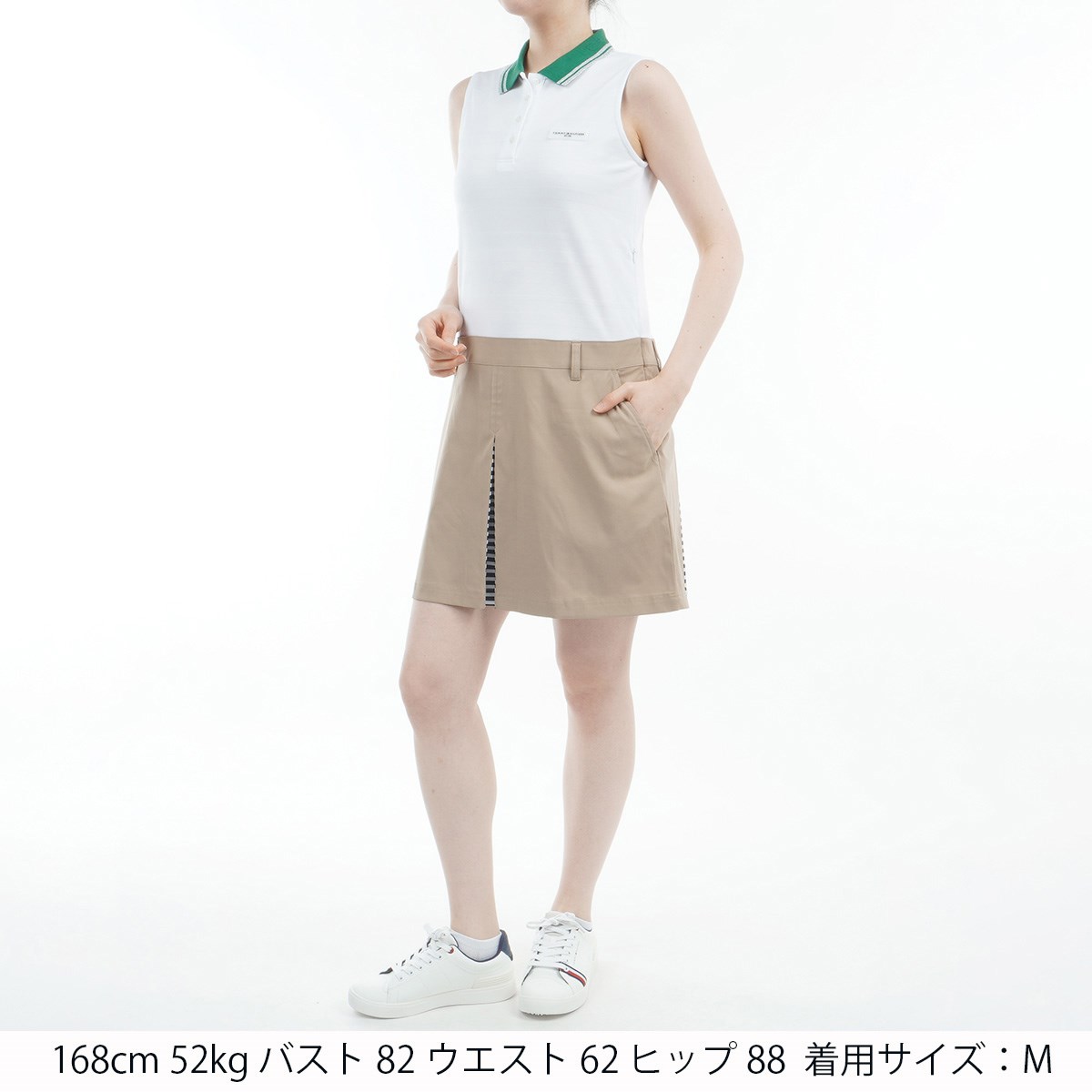 トミー ヒルフィガー ゴルフ TOMMY HILFIGER GOLF ストレッチ ノースリーブ コンビシャツワンピース M サンドベージュ レディス