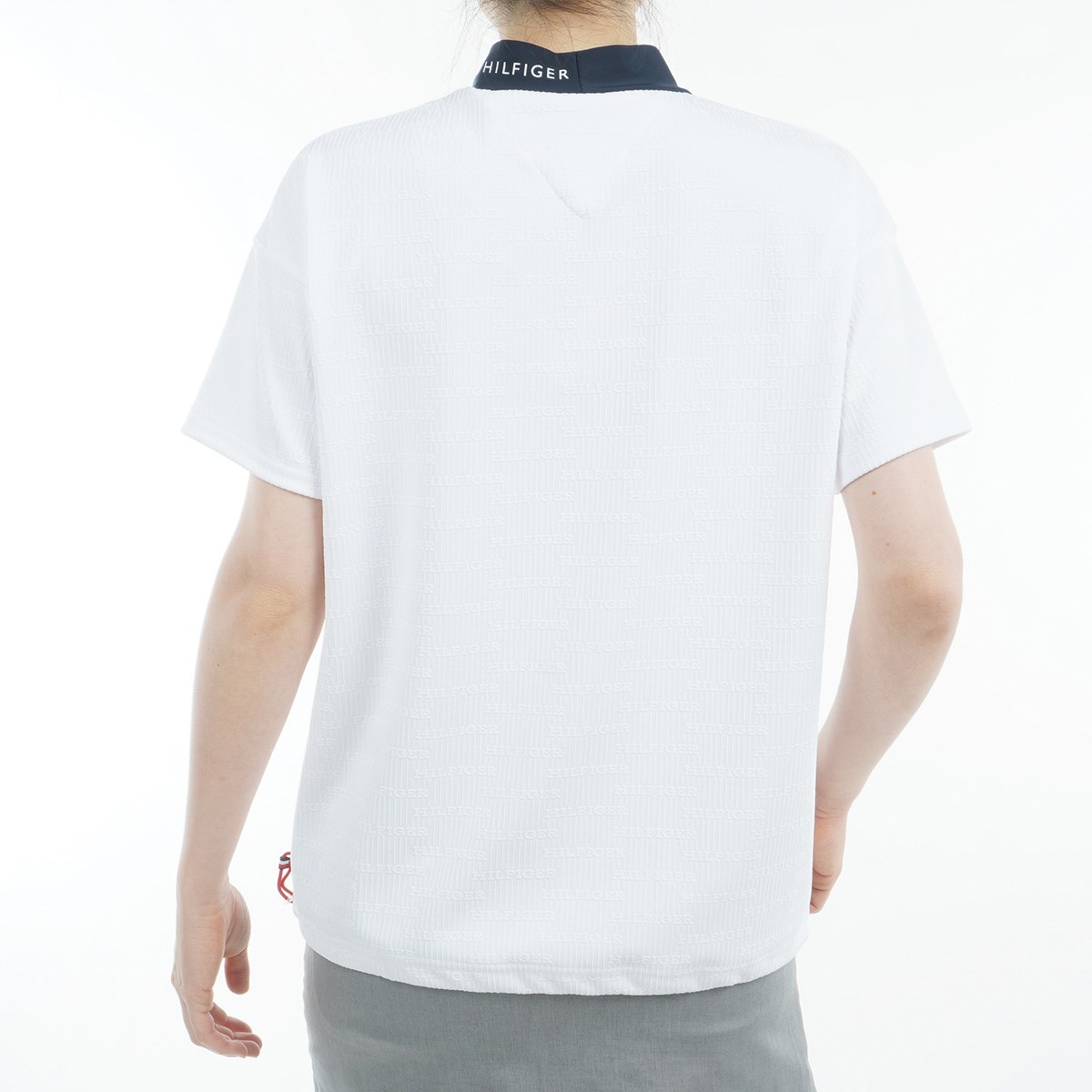 トミー ヒルフィガー ゴルフ TOMMY HILFIGER GOLF ジャカードリラックス モックネック半袖シャツ M ホワイト レディス