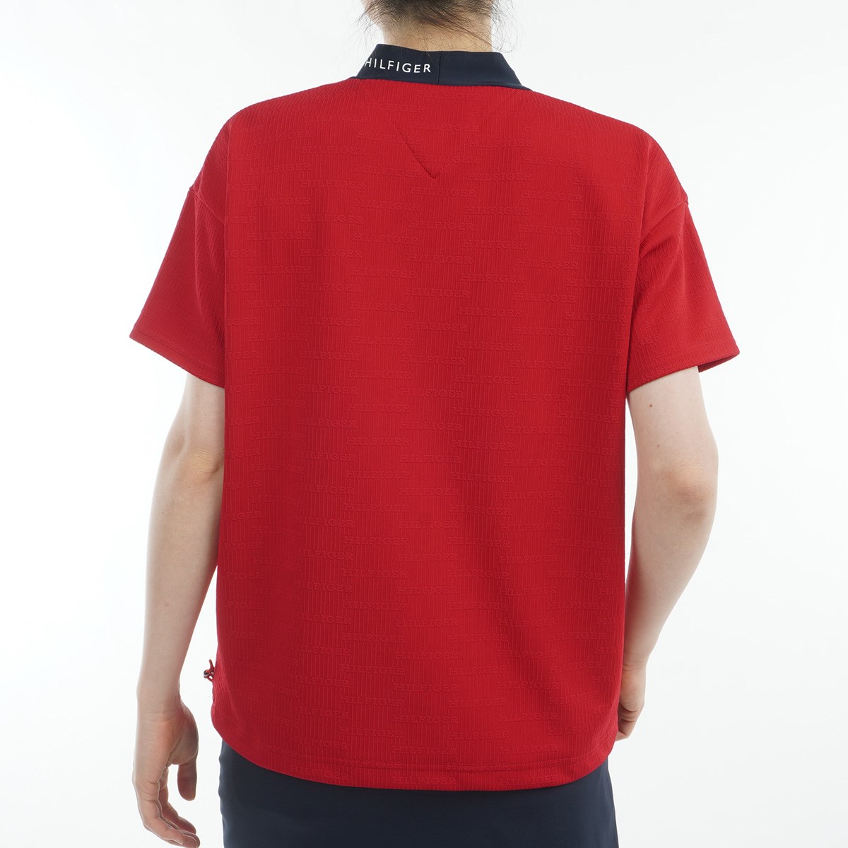トミー ヒルフィガー ゴルフ TOMMY HILFIGER GOLF ジャカードリラックス モックネック半袖シャツ LL レッド レディス