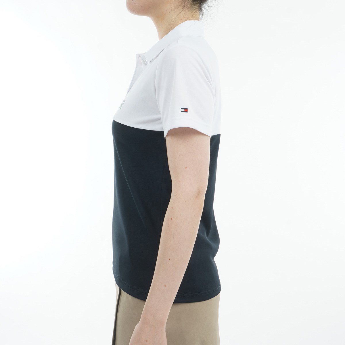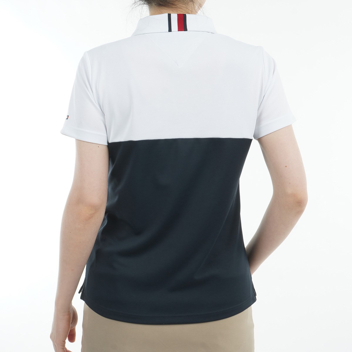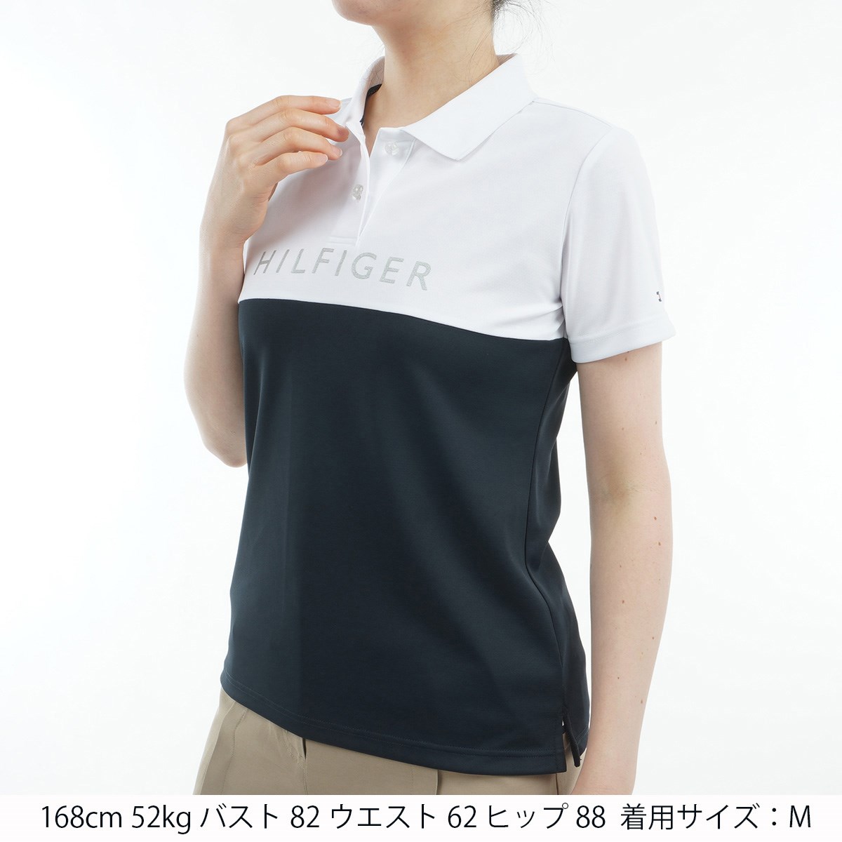 トミー ヒルフィガー ゴルフ TOMMY HILFIGER GOLF コントラストカラー ロゴ半袖ポロシャツ L ホワイト レディス