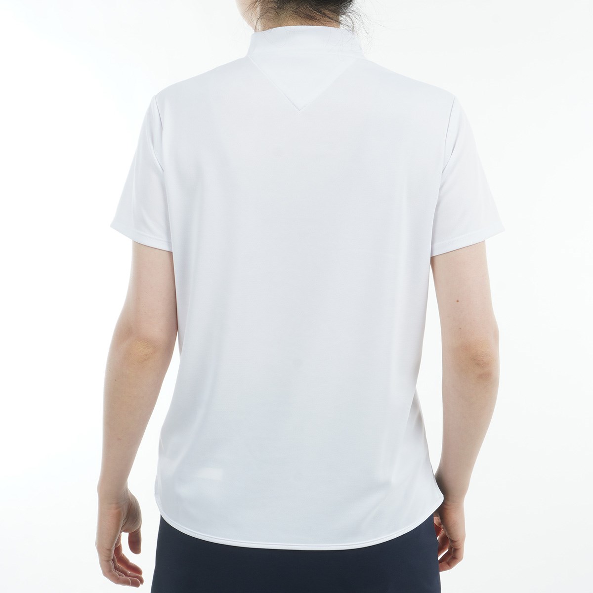 トミー ヒルフィガー ゴルフ TOMMY HILFIGER GOLF ラインロゴ モックネック半袖シャツ S ホワイト レディス
