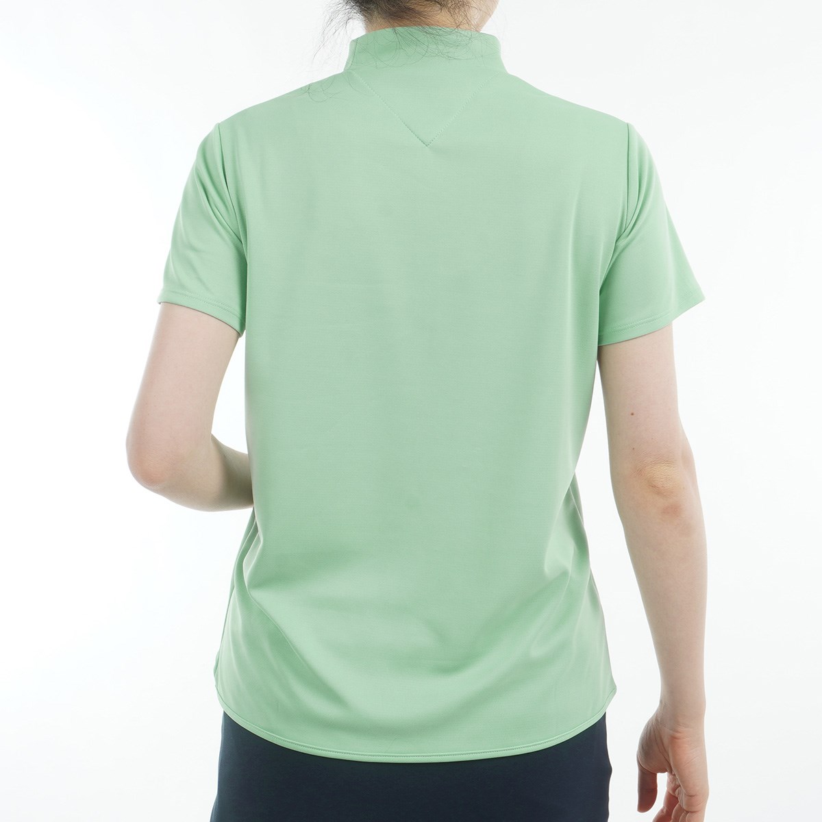 トミー ヒルフィガー ゴルフ TOMMY HILFIGER GOLF ラインロゴ モックネック半袖シャツ S ライムグリーン レディス