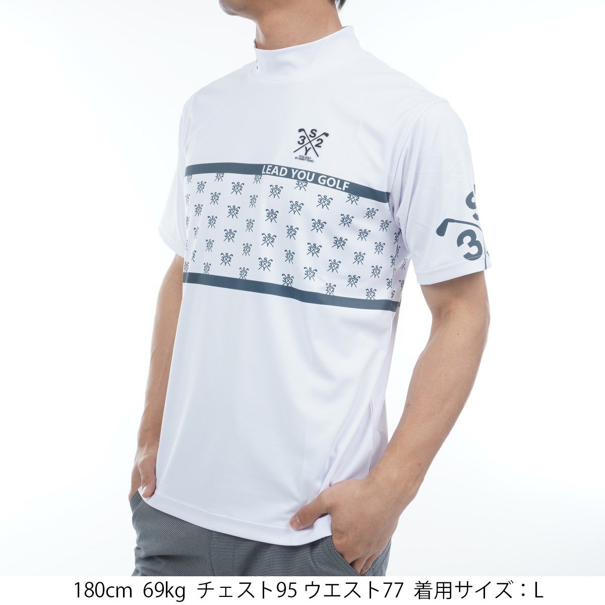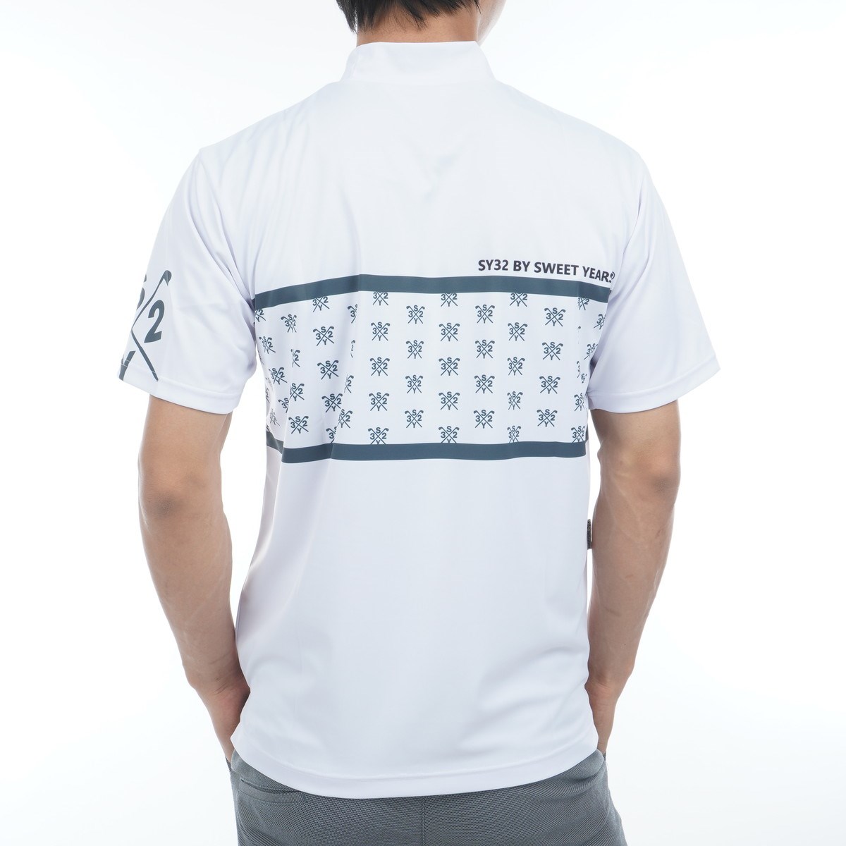 エスワイサーティトゥ バイ スウィートイヤーズ SY32 by SWEET YEARS ストレッチ グラフィッククロスロゴ モックネック半袖シャツ XL ホワイト